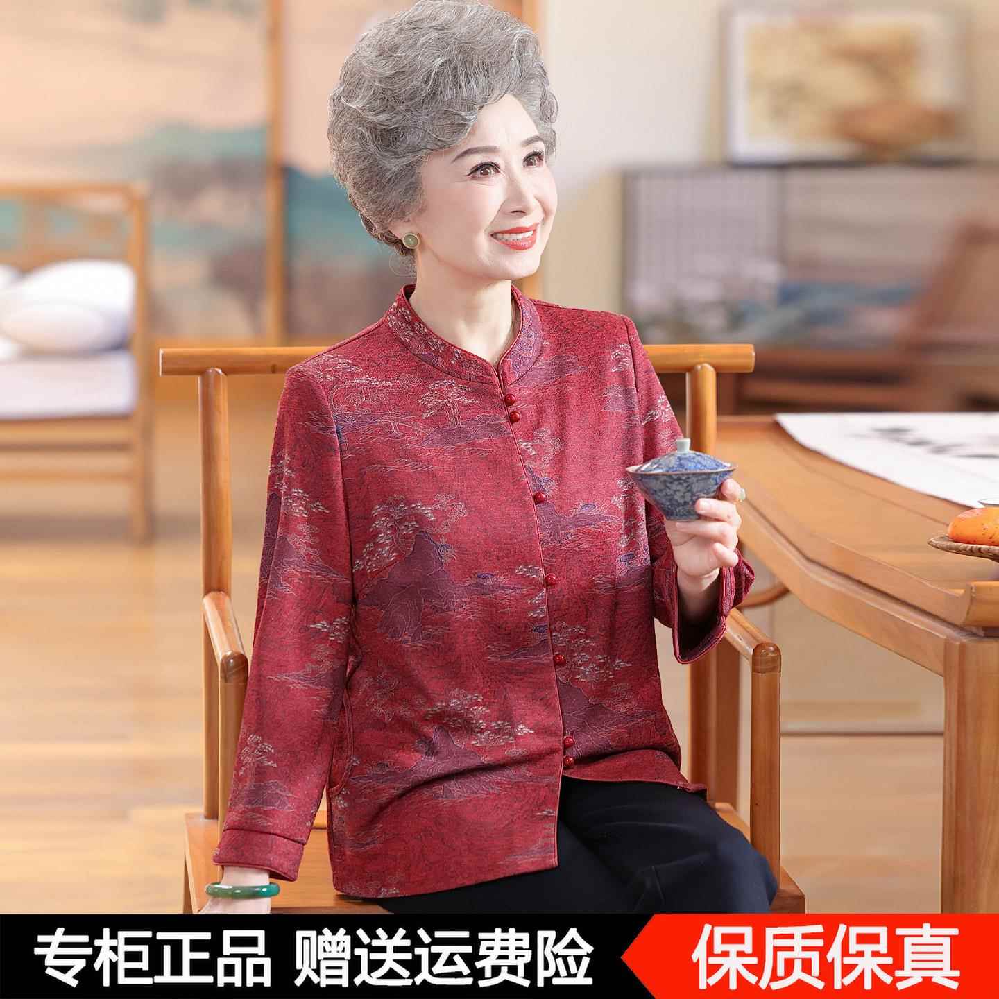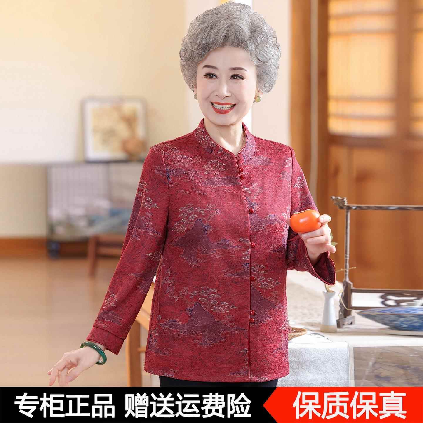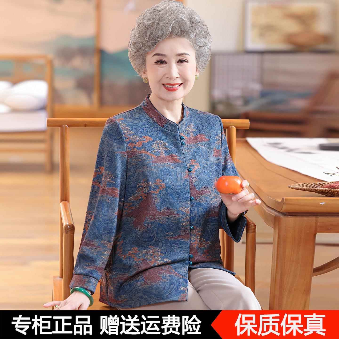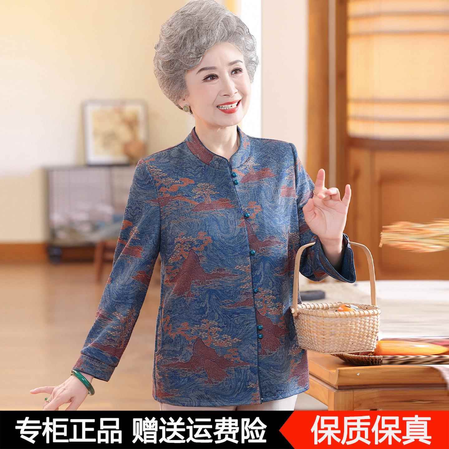 中老年人秋装女奶奶装衬衫老太太老人长袖上衣妈妈新款羊毛衬衣服