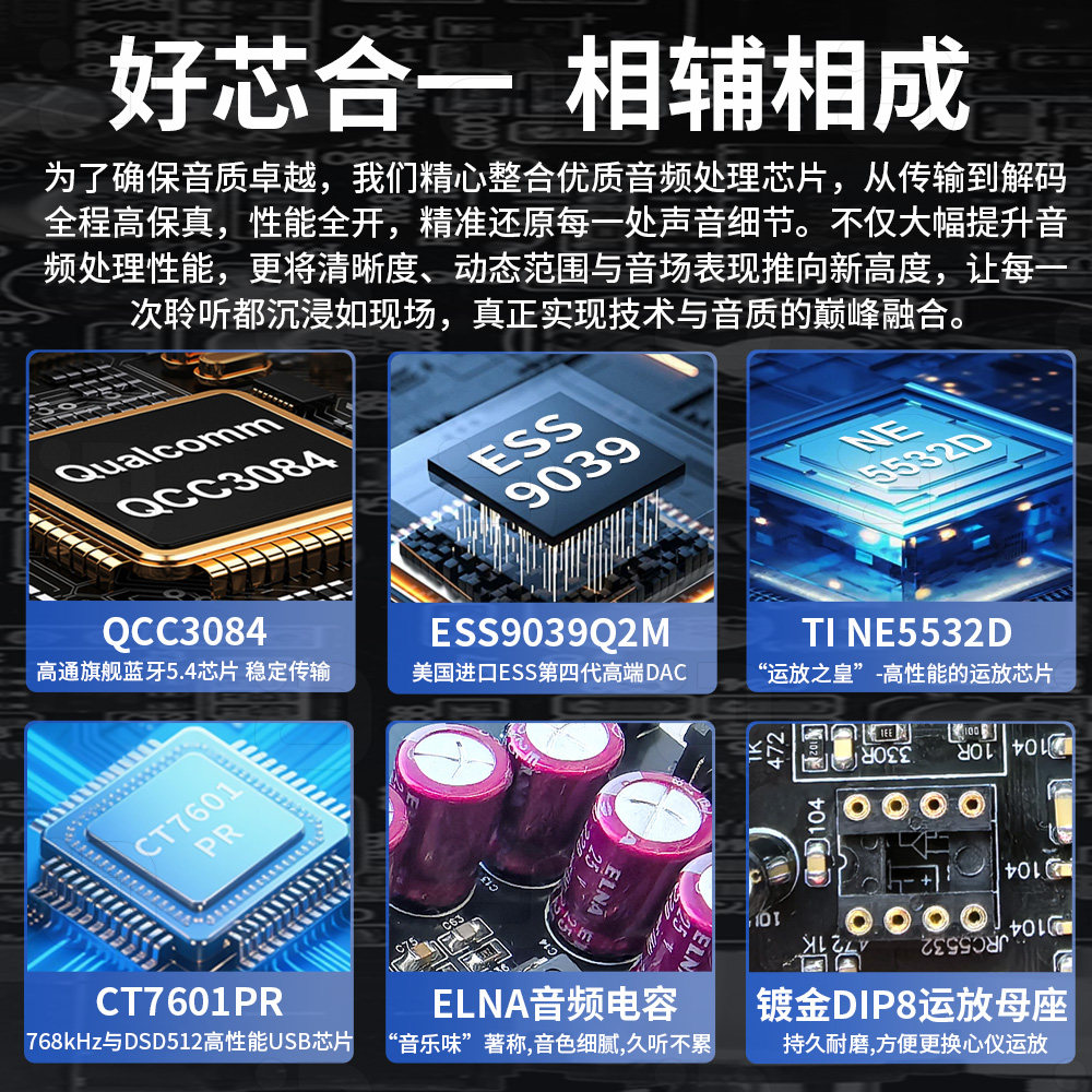 LDAC蓝牙接收器hifi发烧级音频DAC解码USB声卡音响专用ESS9039Q2M