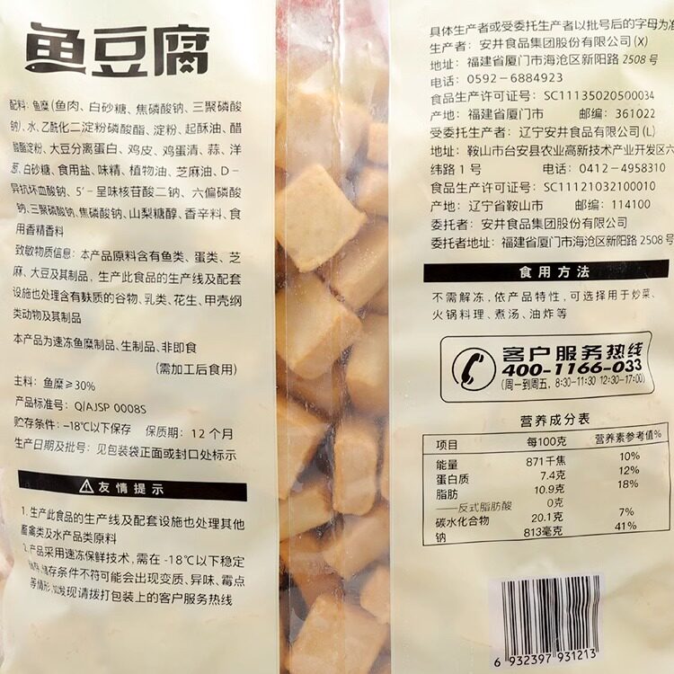 安井丸子鱼豆腐火锅丸子实心鱼丸