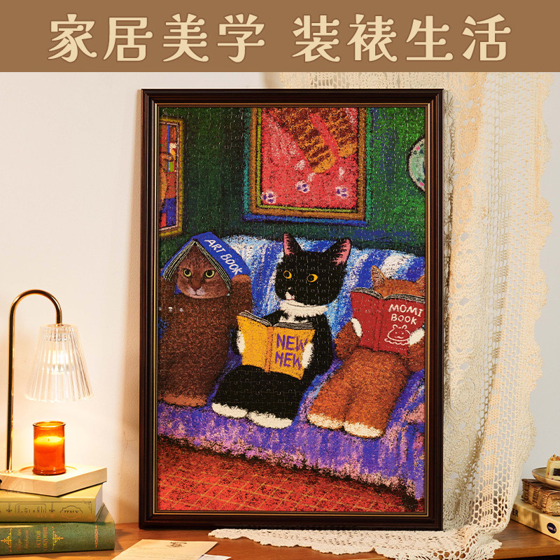 猫的天空之城1000片拼图框简约树脂画框裱框复古挂墙相框装饰摆件