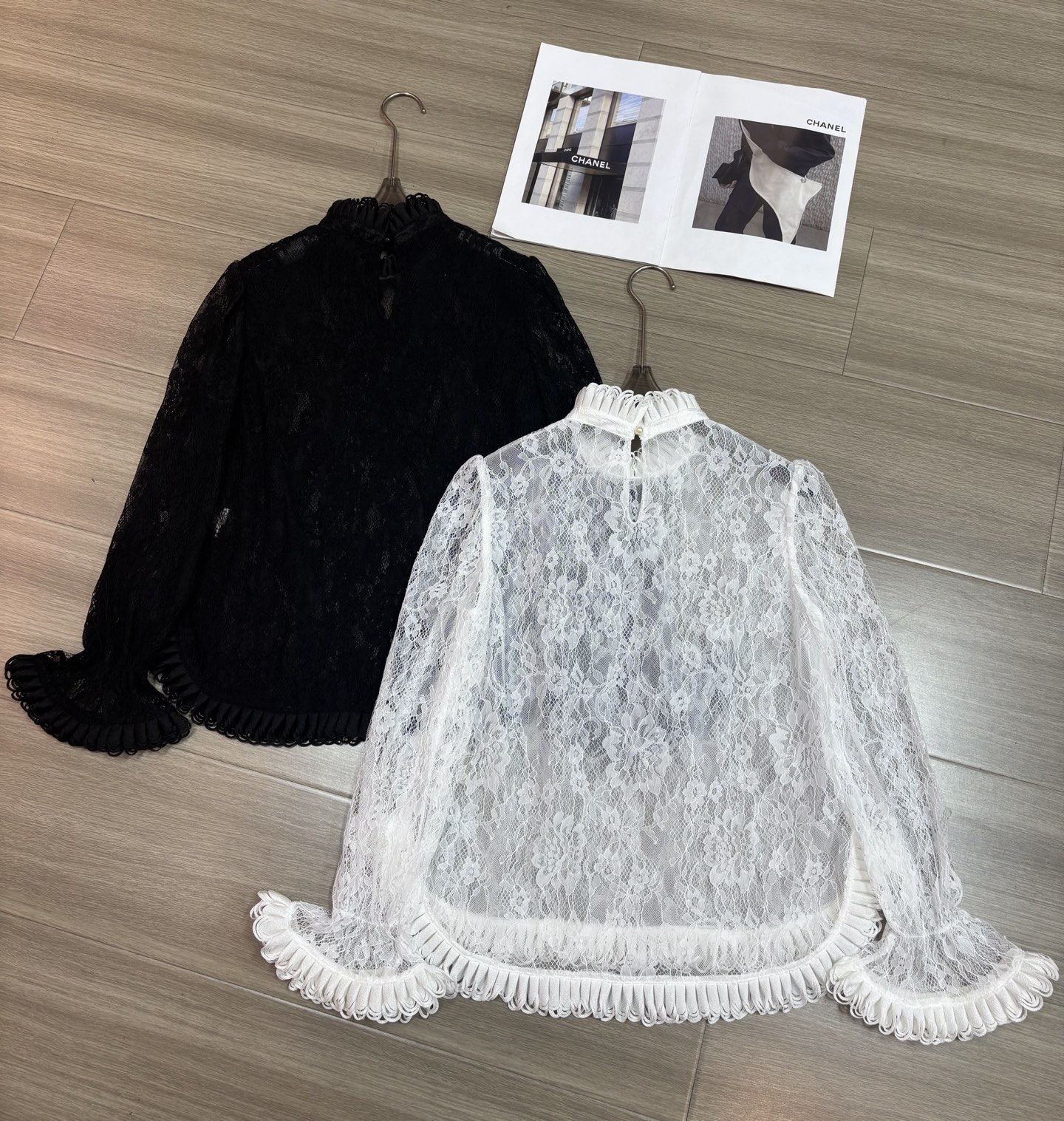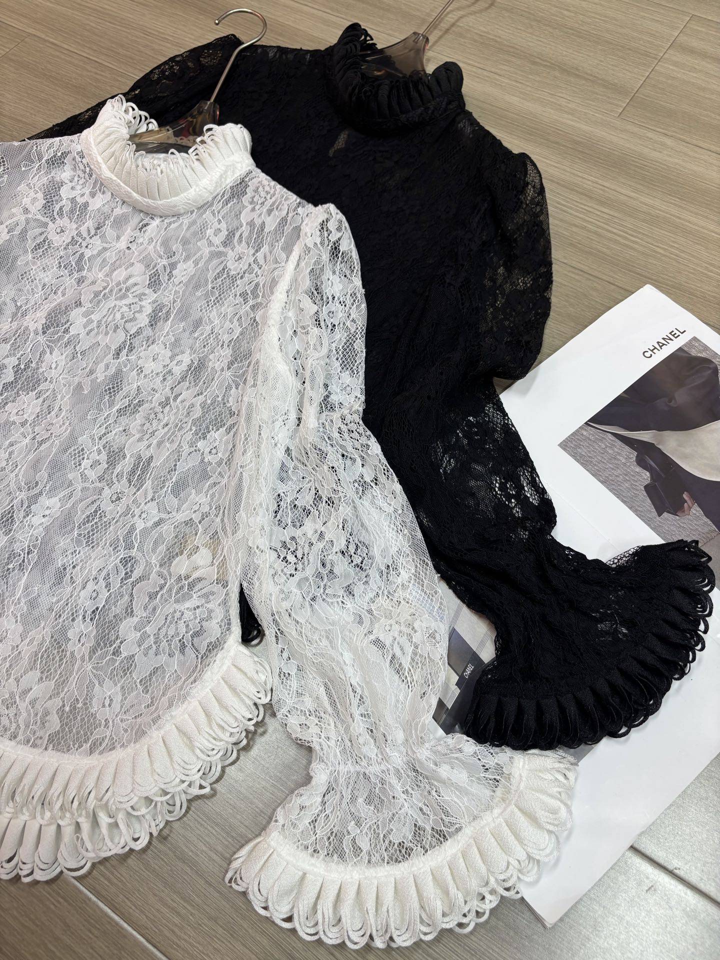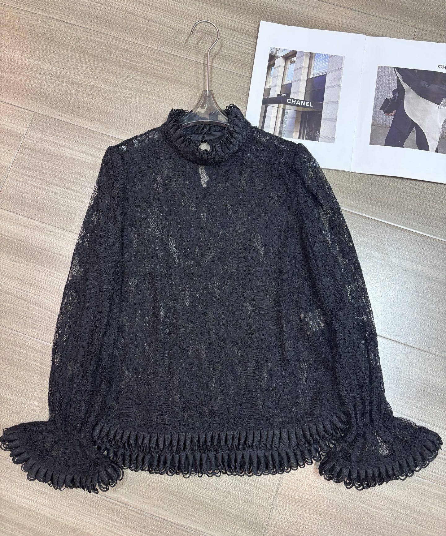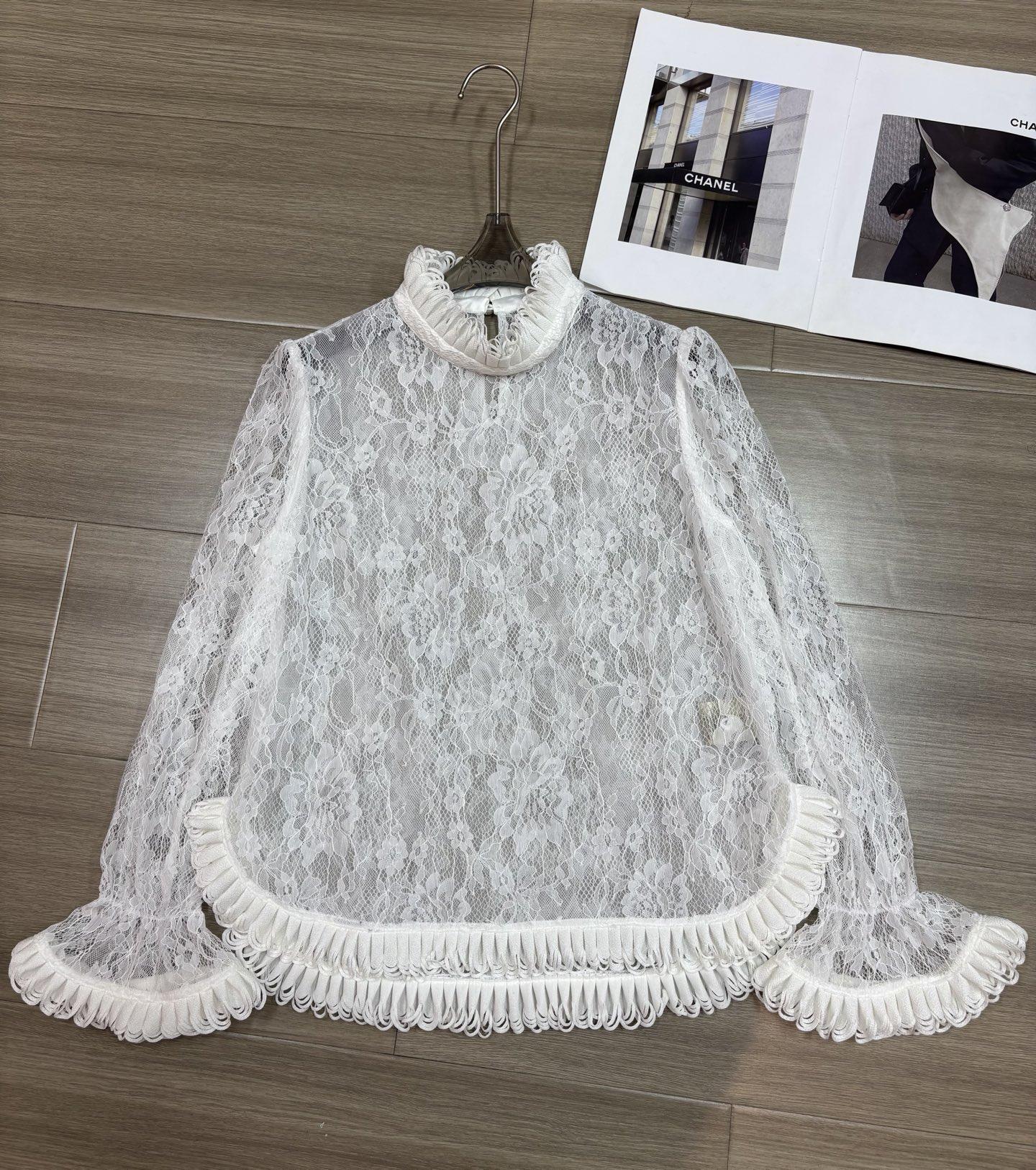 欧货定制面料法式浪漫立领镂空蕾丝喇叭袖花边长袖女人味衬衫上衣