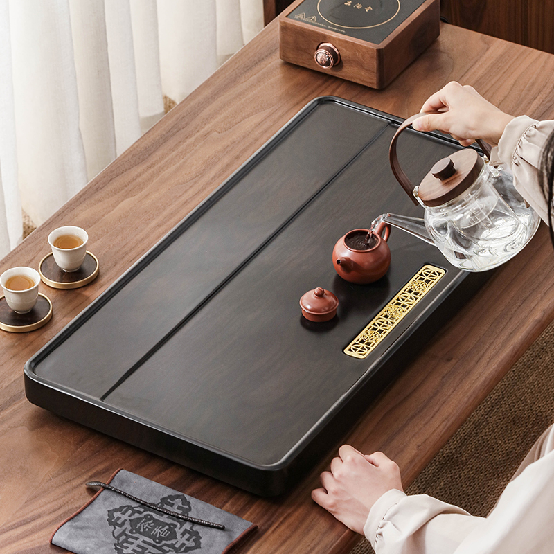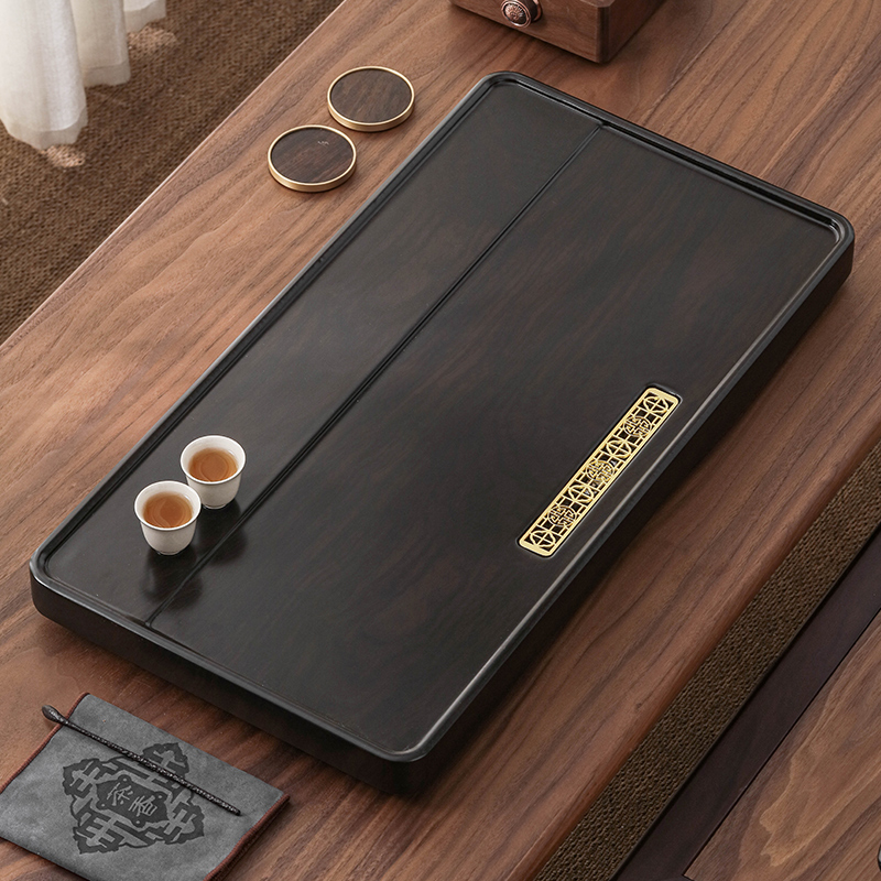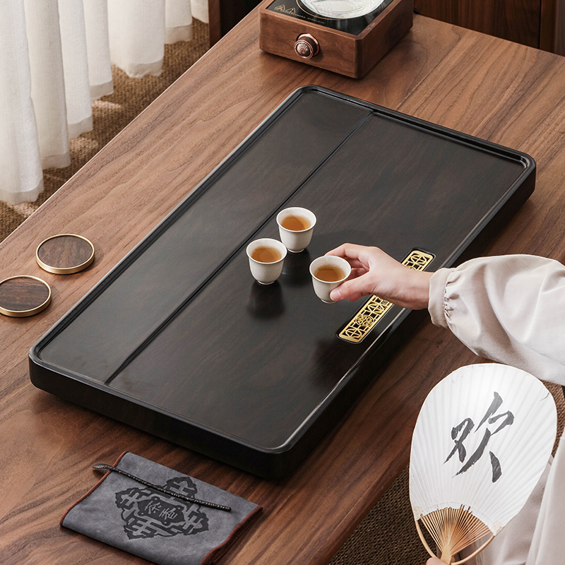茶具茶盘排水式家用简约功夫茶托新款仿实木黑檀整块套装小泡茶台
