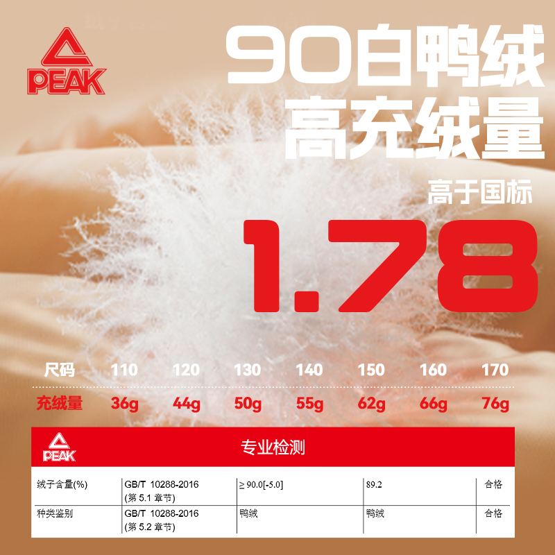 匹克男童轻薄羽绒服保暖
