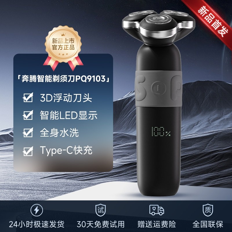 奔腾感应剃须刀电动男士刮胡刀新黑金刚剃胡须刀七夕送男友礼物款