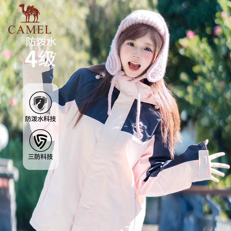 骆驼运动外套女防风防水加绒保暖三防跑步夹克登山服单层软壳衣男