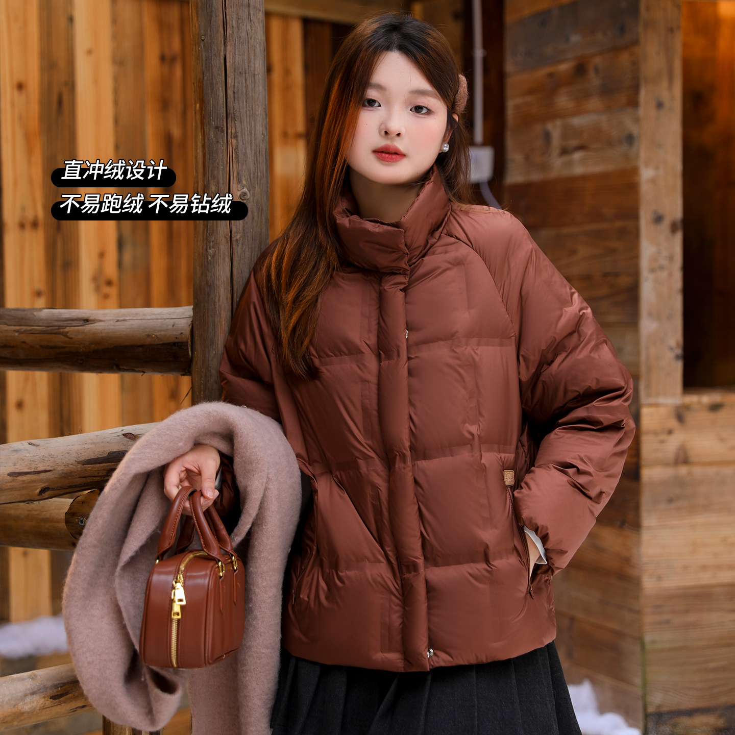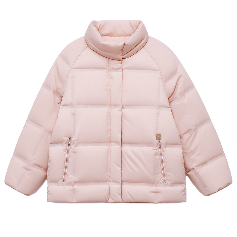 DM100大码百分百女装微胖mm冬季防风立领方格短款轻薄羽绒服外套