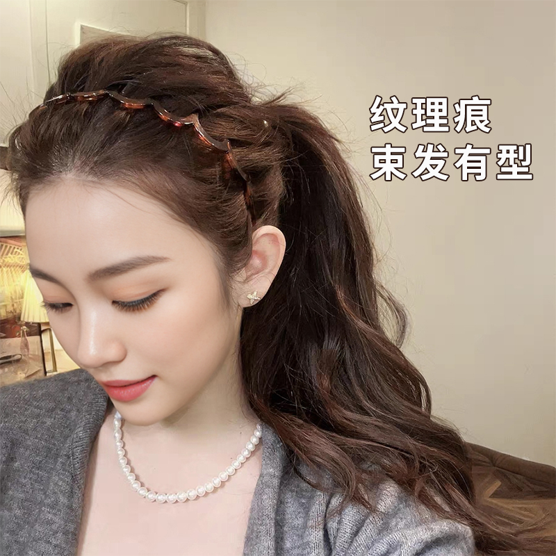 波浪发箍树脂高颅顶女黑色纹理头箍2025带齿不卡头发夹洗脸女发卡