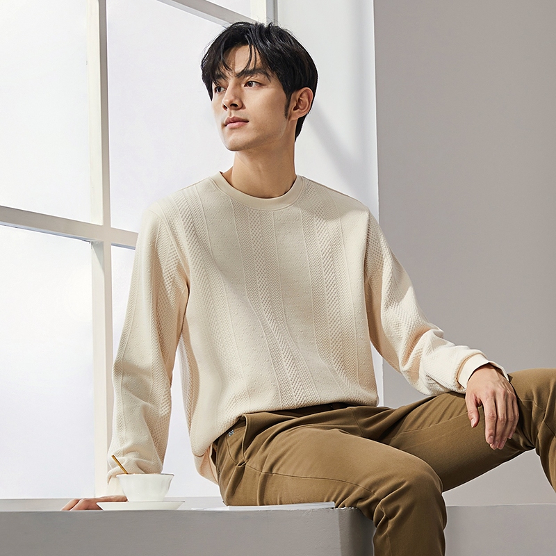 柒牌男装圆领卫衣男士2025秋季新款提花肌理时尚休闲长袖套头上衣