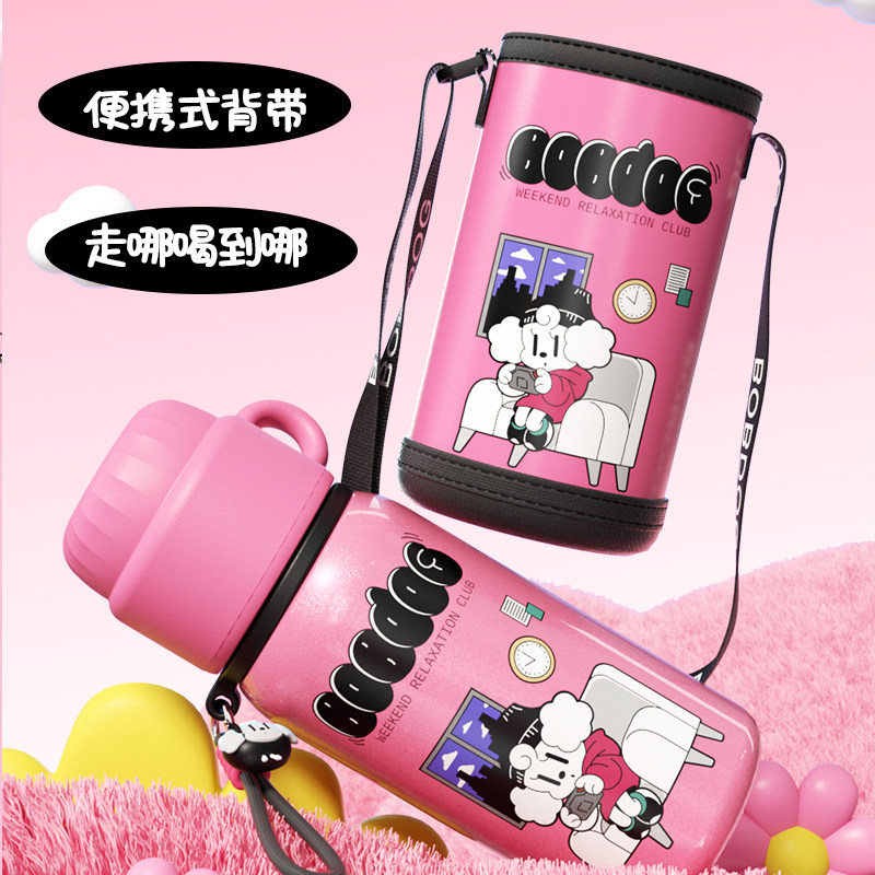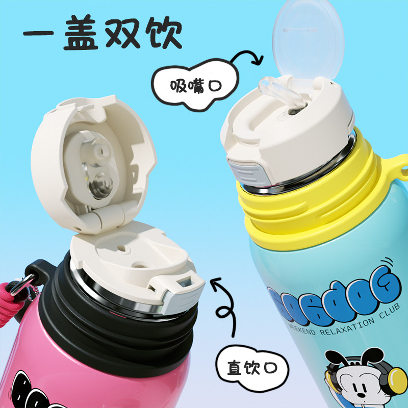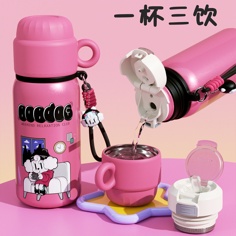 巴布豆可爱保温杯女学生上学吸管水杯子男高颜值卡通儿童水壶便携