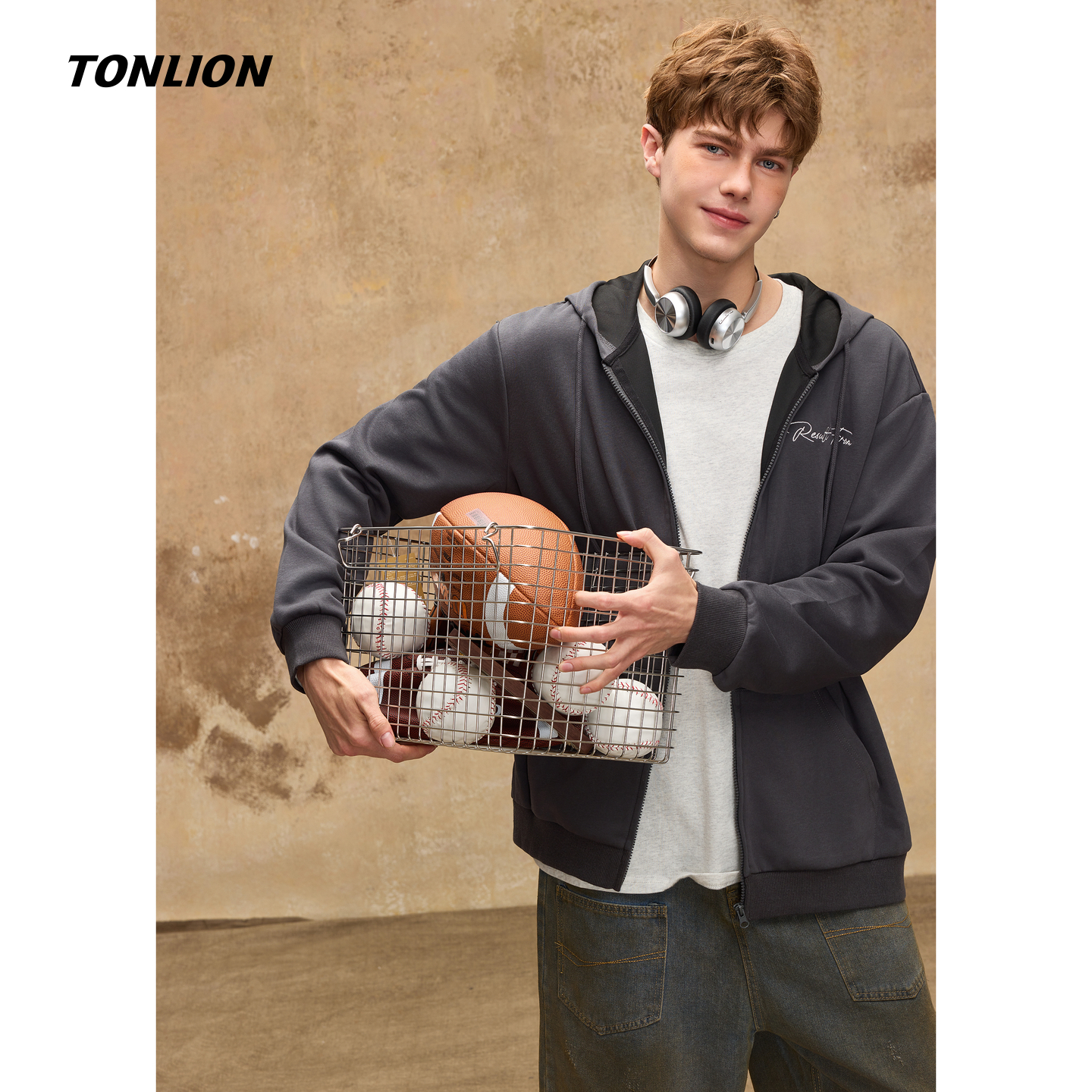 唐狮2025春季新款男士夹克外套休闲运动宽松纯色连帽短款上衣时尚