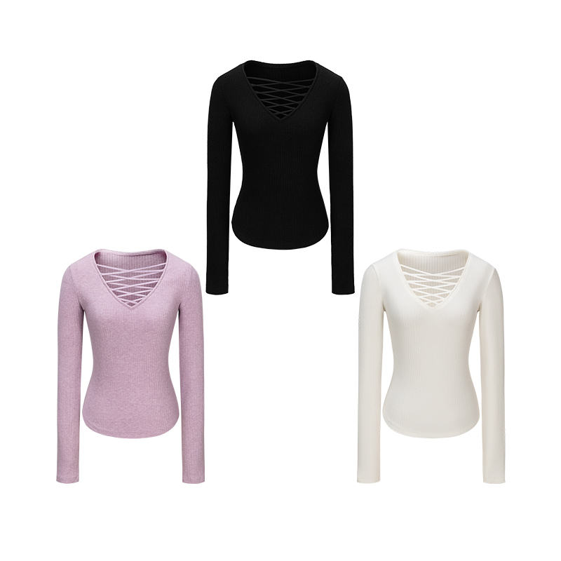 纯欲镂空V领交叉绑带针织衫上衣
