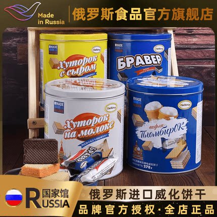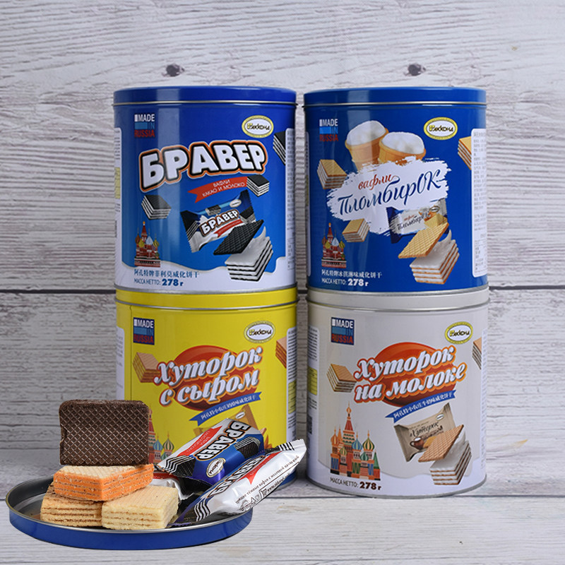 阿孔特俄罗斯国家馆进口多口味夹心多层威化罐装礼盒休闲饼干年货