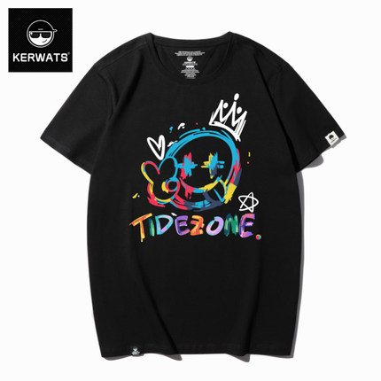 KERWATS青少年涂鸦彩色笑脸印花休闲体恤短袖潮胖子大码t恤男半袖
