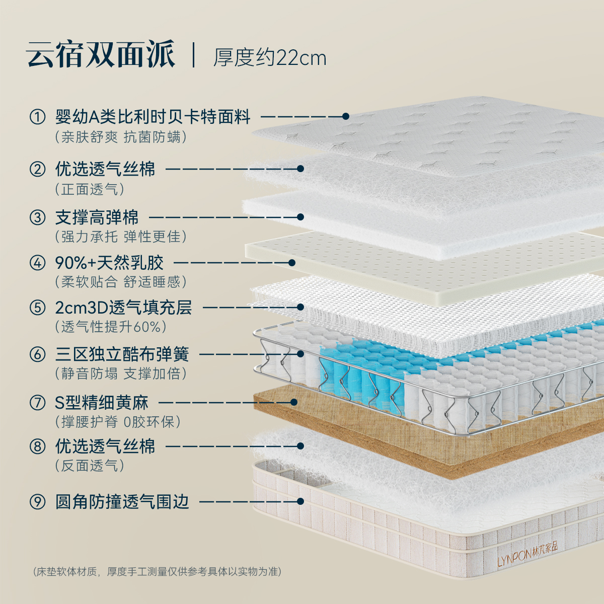 林芃云宿双面派弹簧床垫席梦思天然乳胶黄麻护脊软硬垫