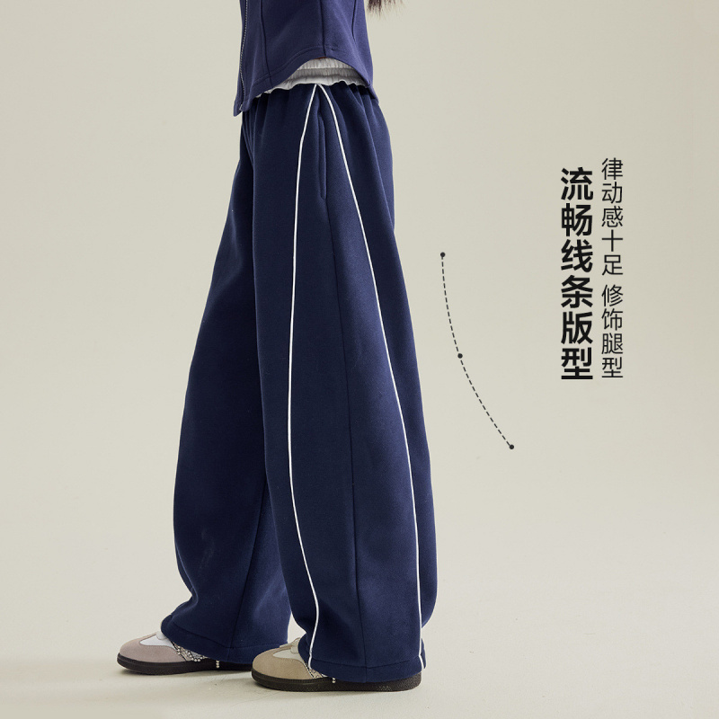 媛媛公主2025冬季女童加绒加厚卫裤阔腿裤松紧腰运动童装裤子
