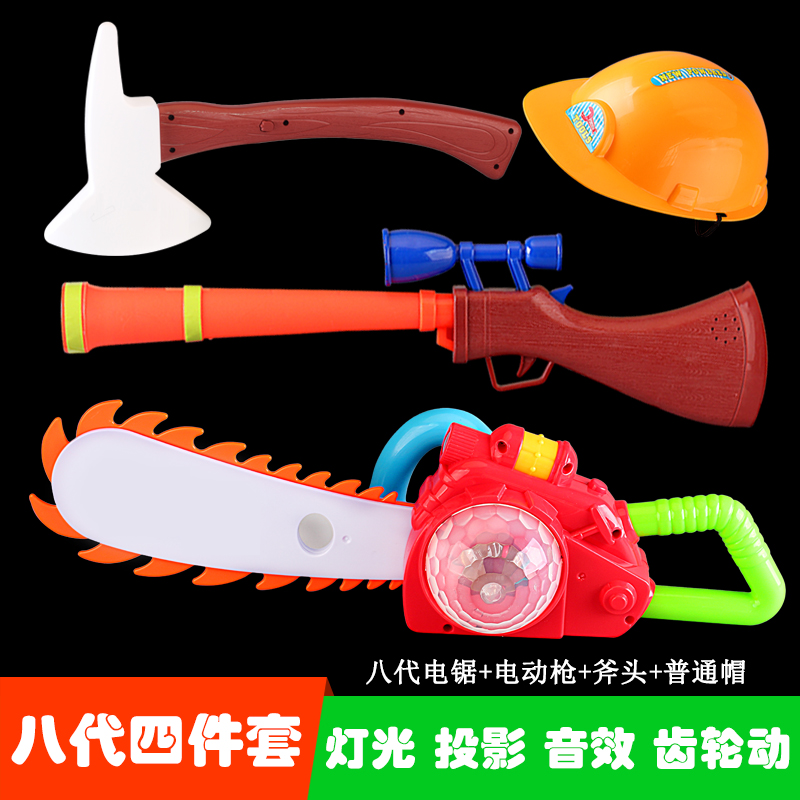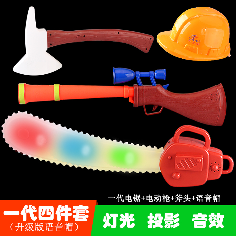 光头强电锯玩具砍树工具锯子伐木装备电动投影枪套装3岁儿童玩具