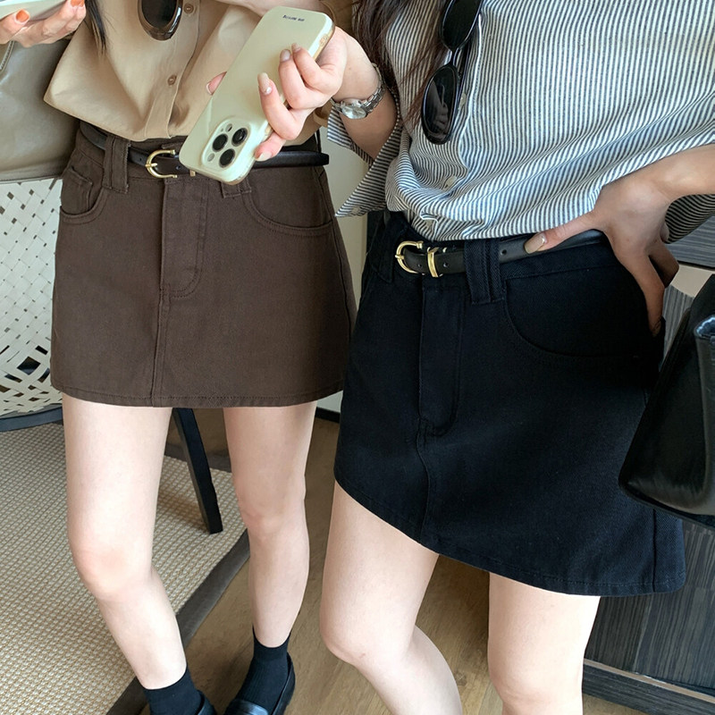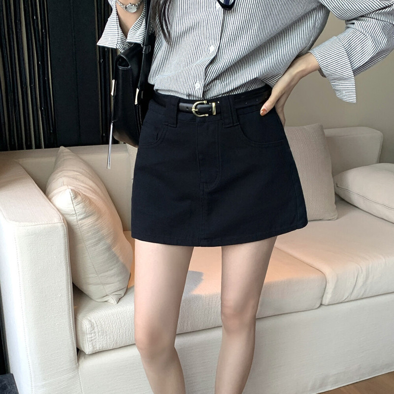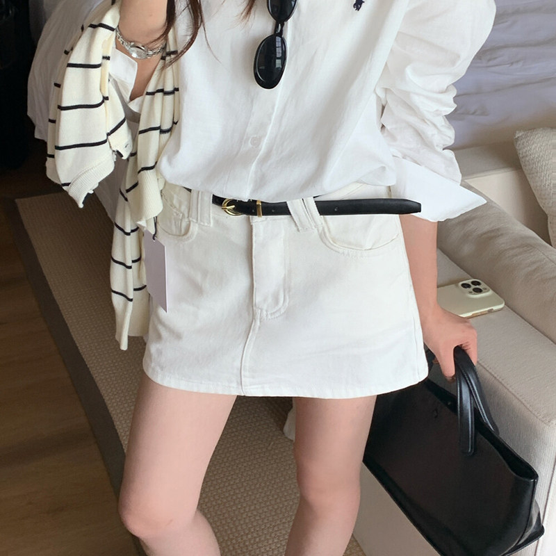 白色腰带半身裙女2025秋新款百搭显瘦a字裙包臀一步裙防走光短裙