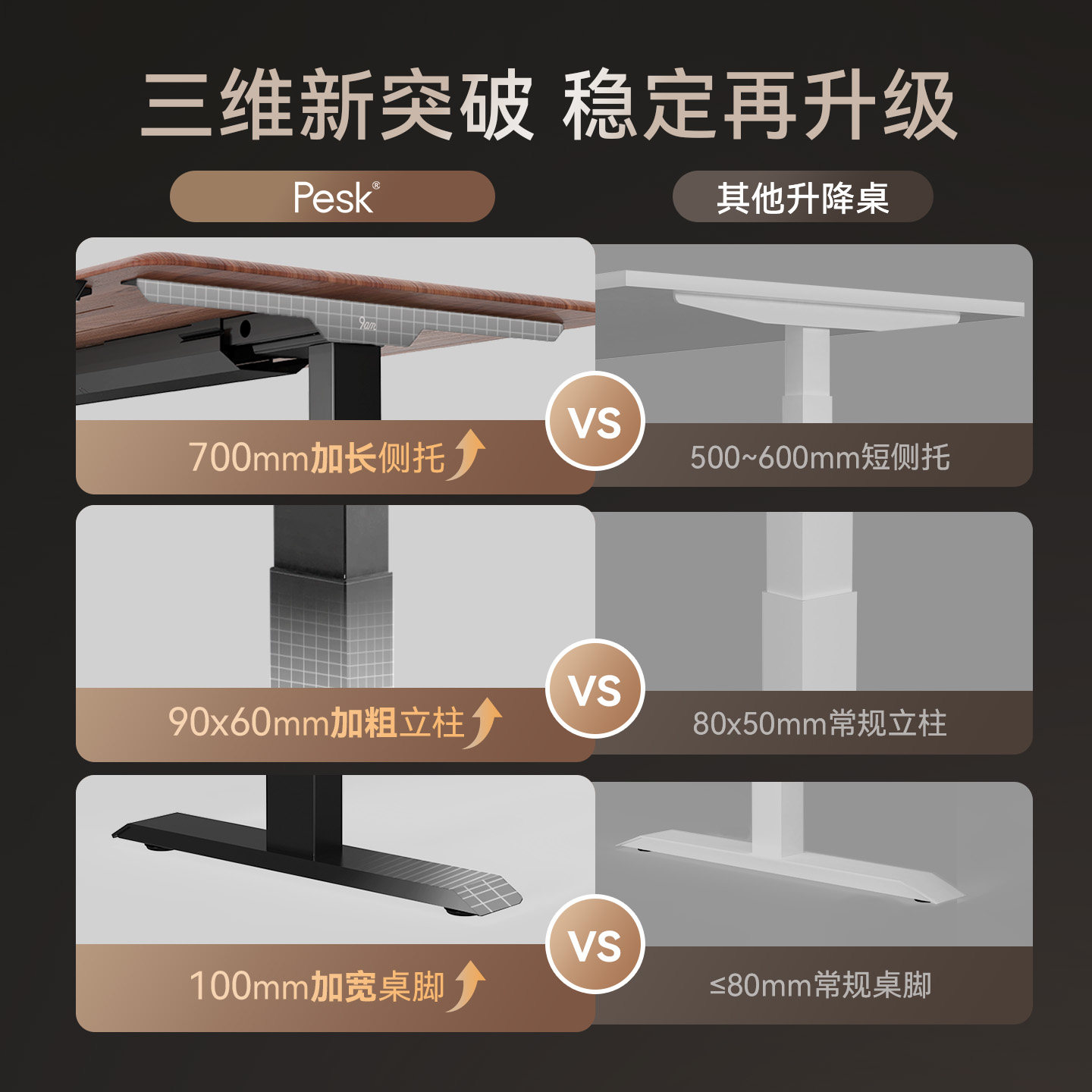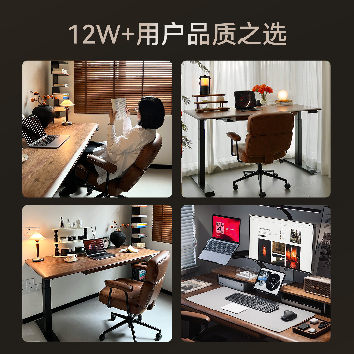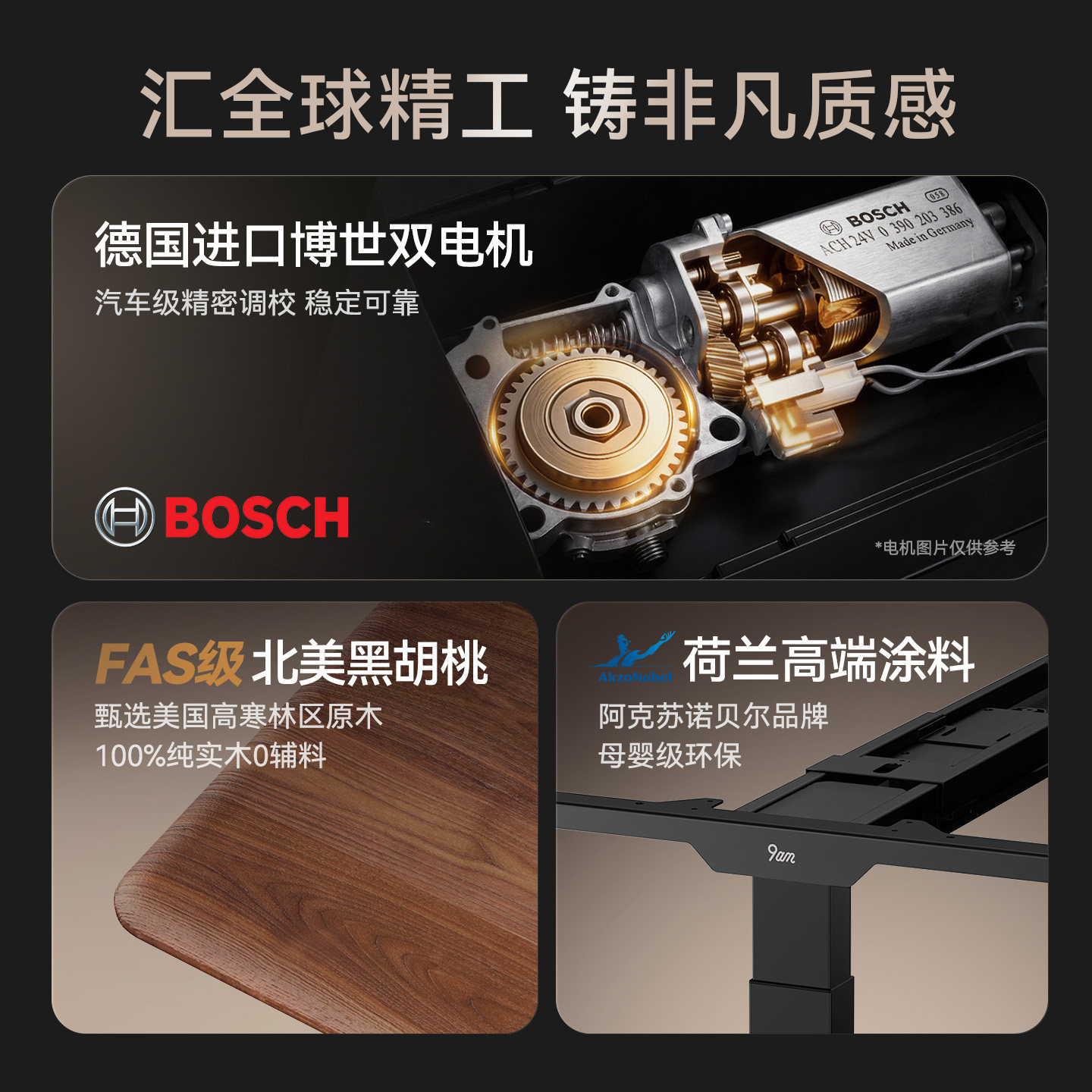 9am黑胡桃木实木电动升降桌中古风家用办公电脑桌工作台书桌Pesk