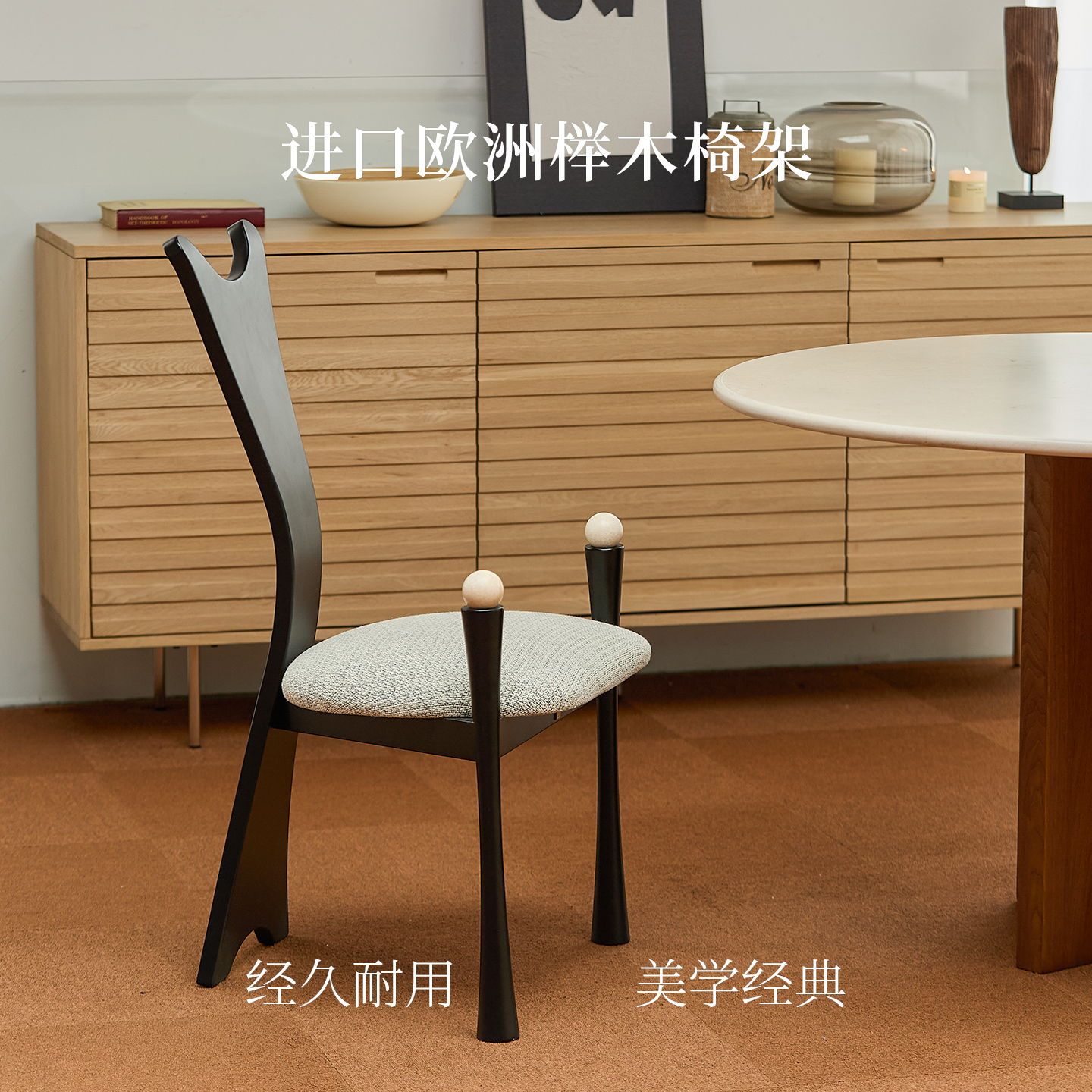 氧际设计师原创餐椅中古餐椅复古实木靠背餐桌凳子侘寂风派对椅子
