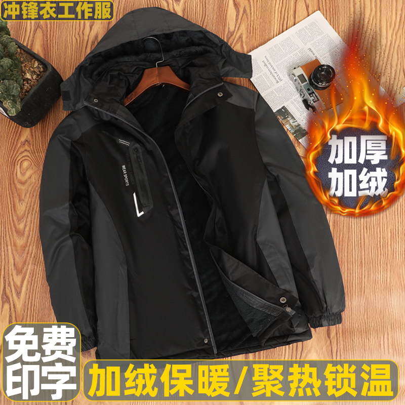冬季棉衣男装冲锋衣工作服加绒加厚防寒保暖棉服劳保服加大码外套