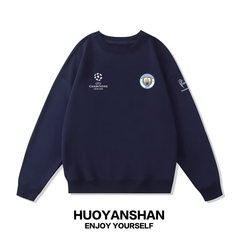 欧冠联赛曼城皇马巴萨切尔西米兰圆领卫衣秋冬加绒足球运动上衣服