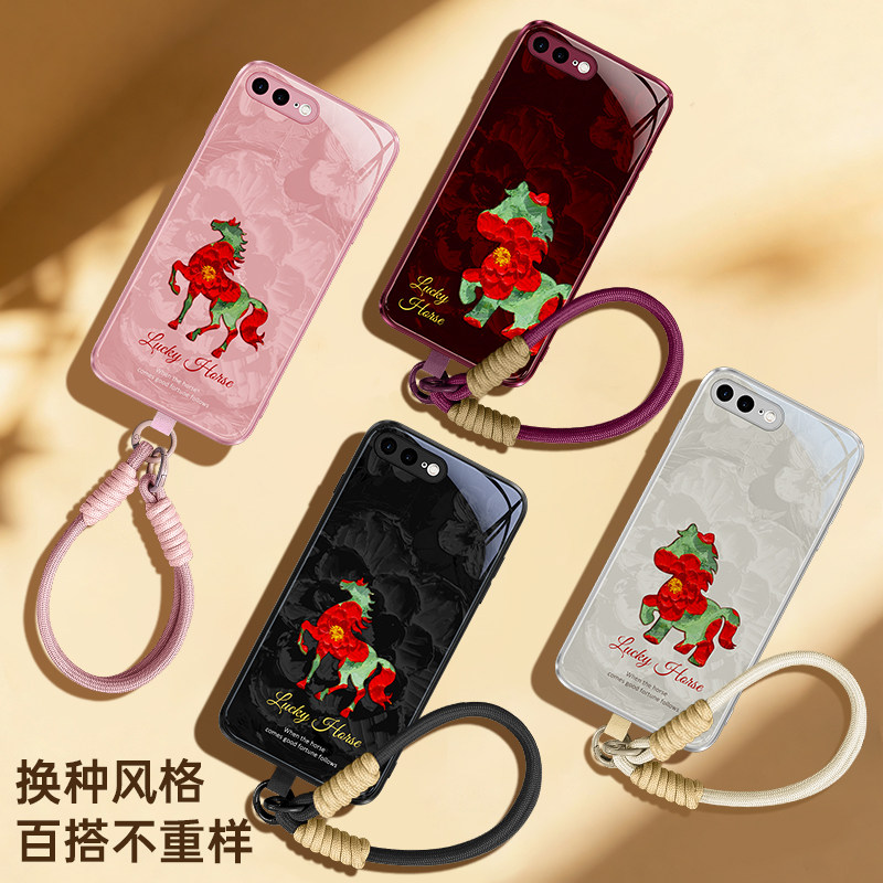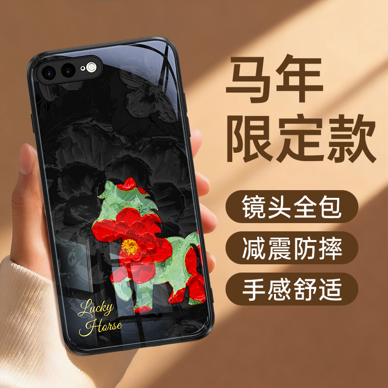 新年油画小马适用苹果7手机壳iPhone8/6/7Plus/8Plus/6splus/6s新款2026马年限定红色硅胶套防摔六i男女外壳