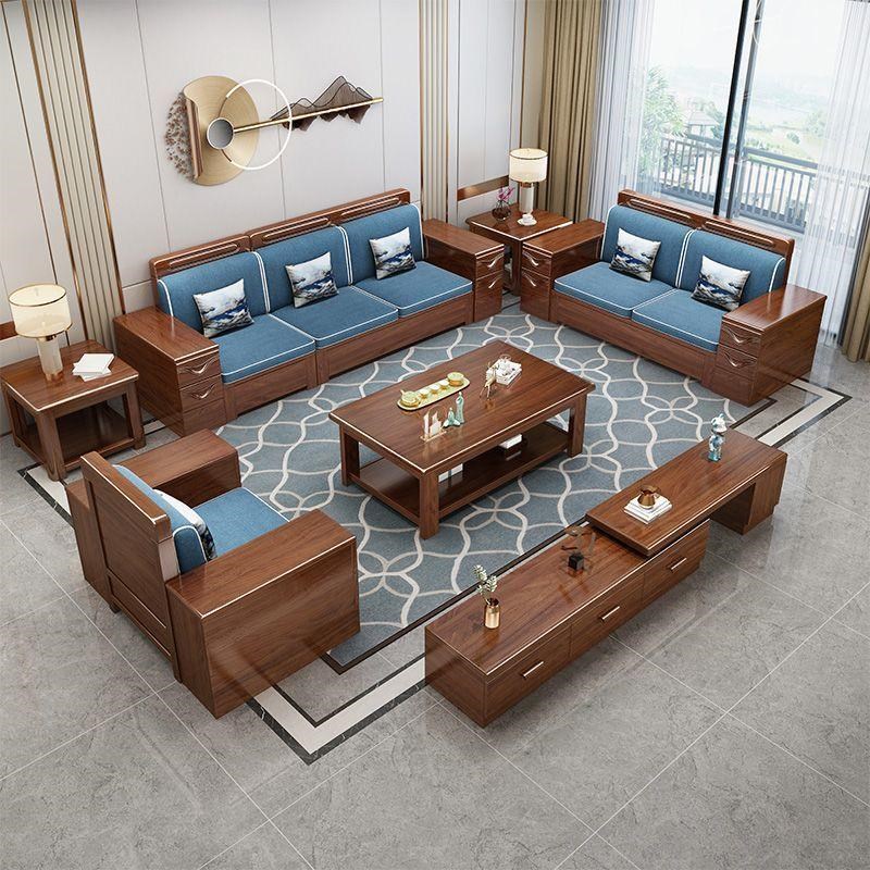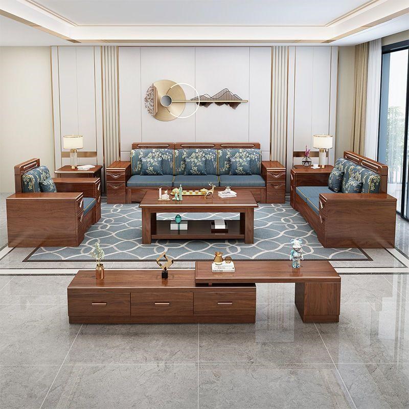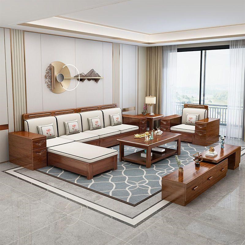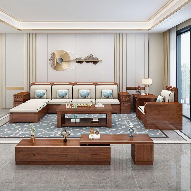 现代中式胡桃木实木沙发组合客厅冬夏两用贵妃小户型转角储物家具