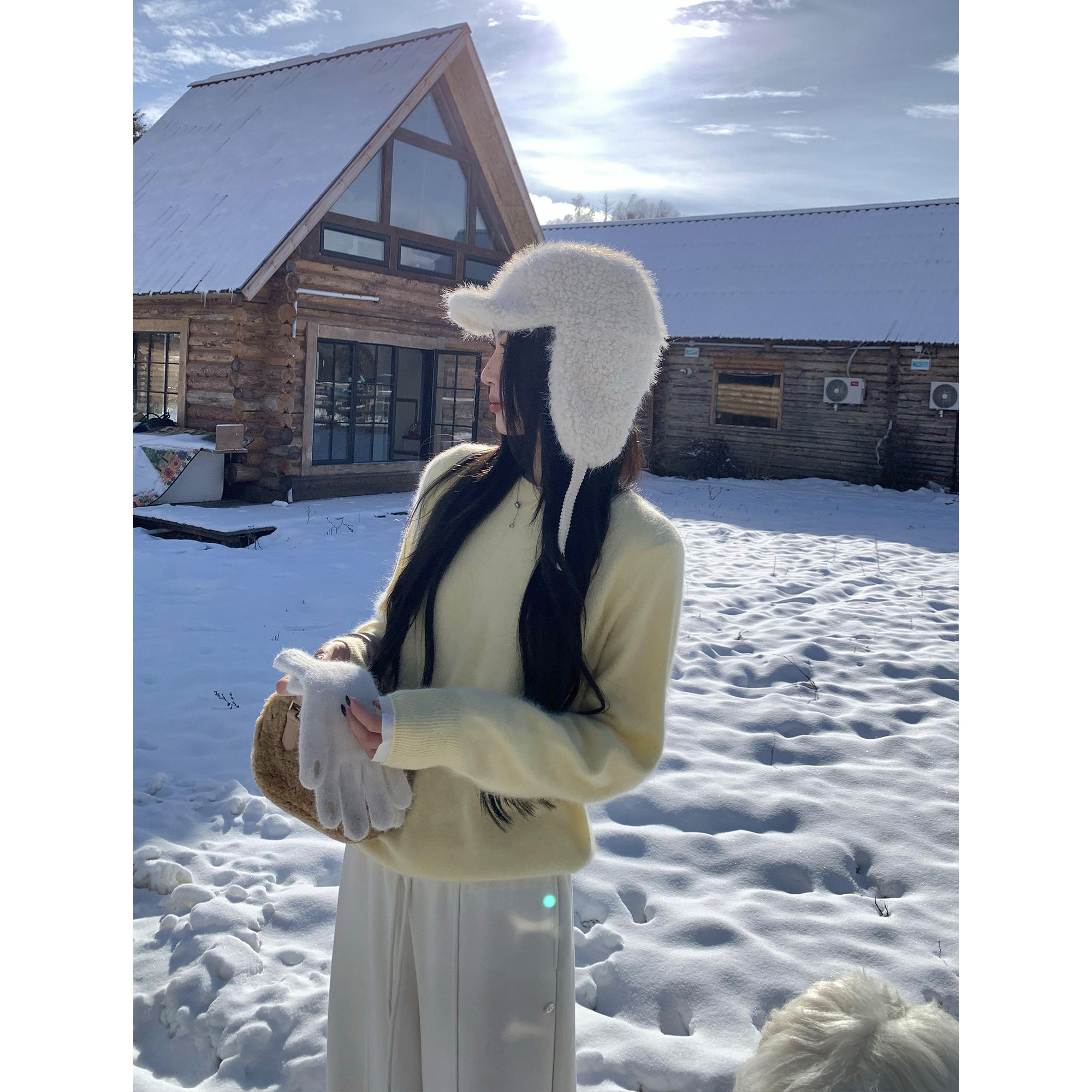 pusumede 随性慵懒感 绵羊毛套头圆领针织衫女宽松毛衣长袖上衣