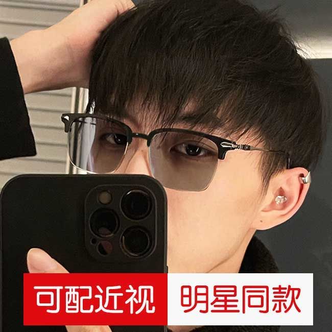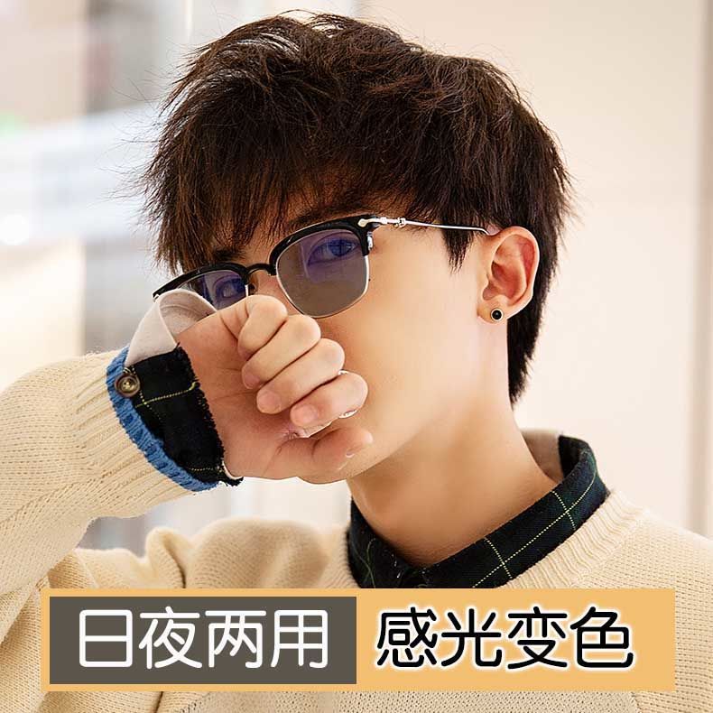 渣男彼岸花超轻变色近视眼镜男复古防蓝光辐射抗疲劳护眼平光镜潮