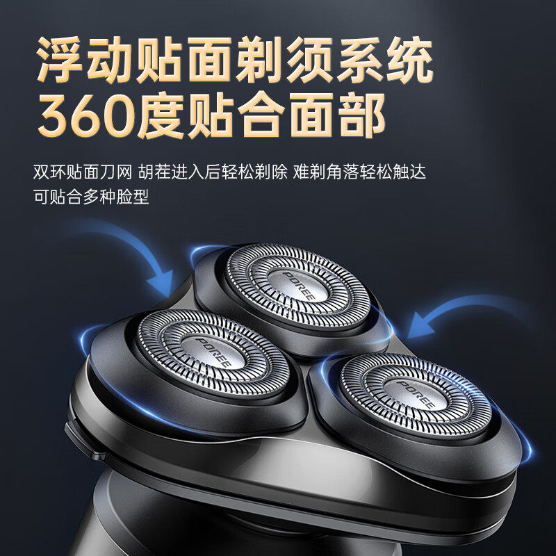 飞科剃须刀男士电动刮胡刀旋转三刀头全身水洗剃须刀飞科旗下博锐