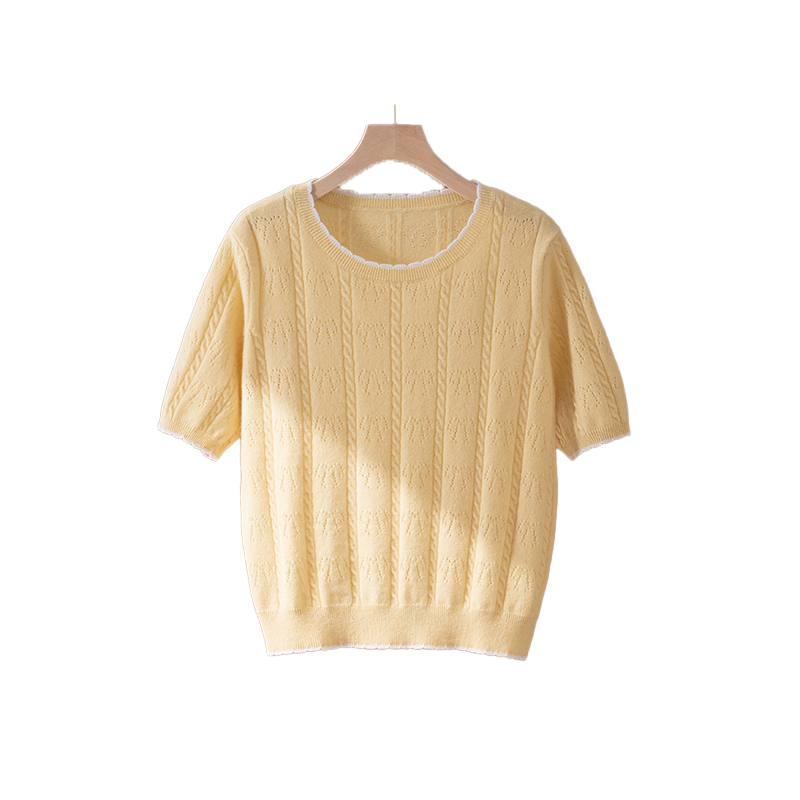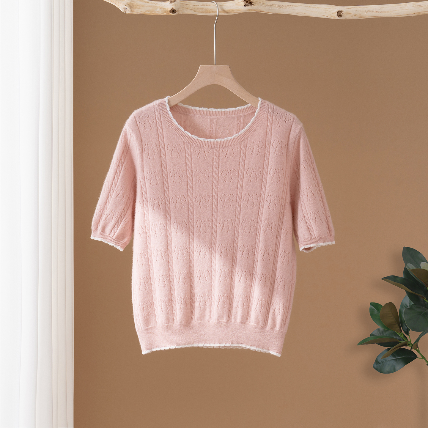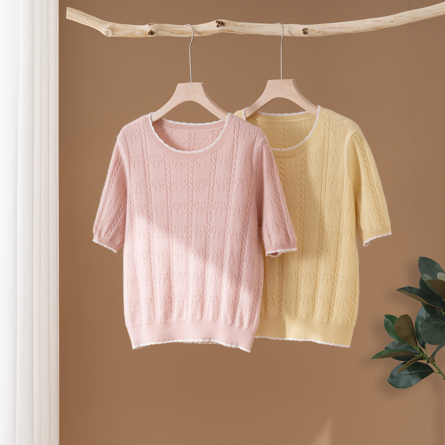 秋冬新款100%山羊绒衫女圆领针织衫宽松套头毛衣打底百搭上衣短袖