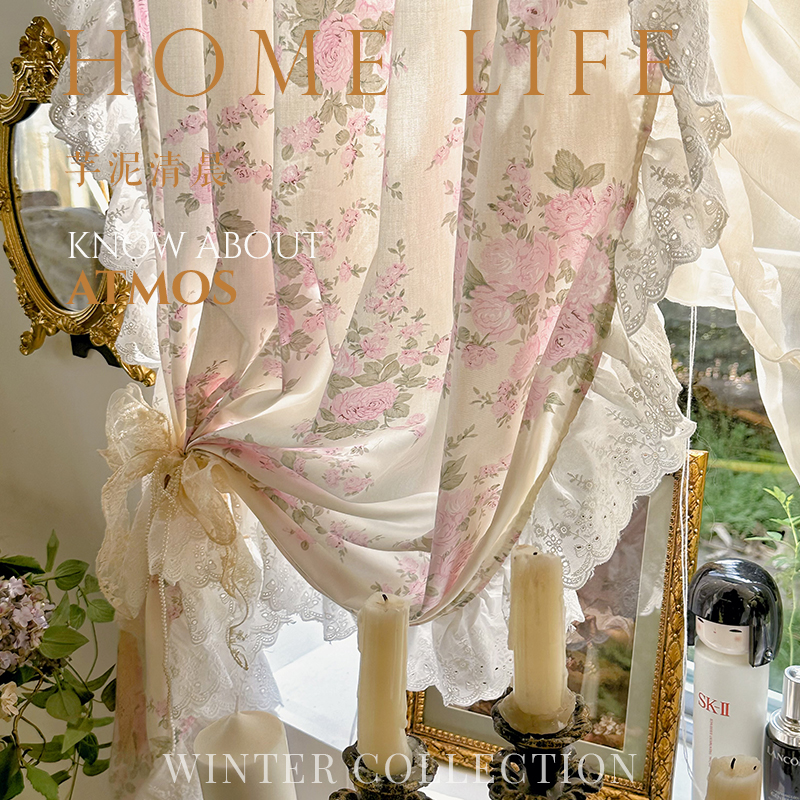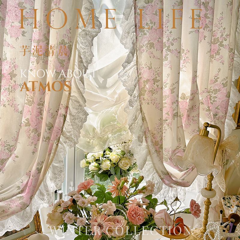 法式公主风窗帘手绘粉紫玫瑰印花卧室飘窗甜美韩式小窗半帘田园风
