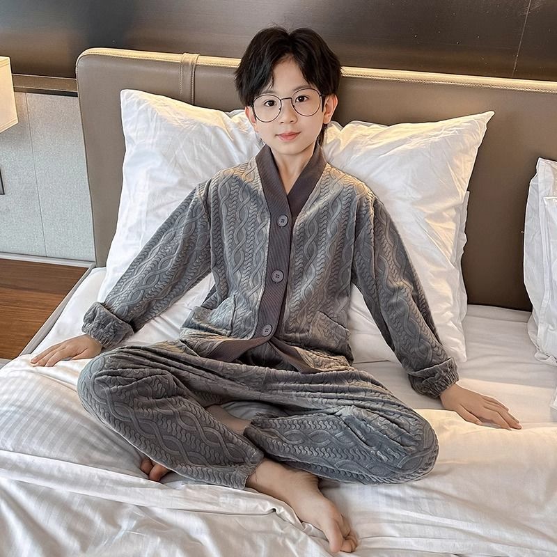 男童秋季睡衣套装春秋款2024新款中大童儿童装青少年珊瑚绒家居服