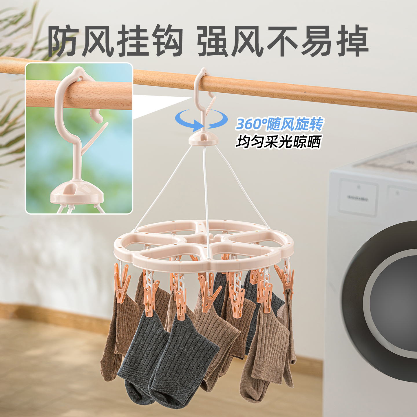 茶花晾衣架塑料夹子袜夹衣架宿舍学生家用内衣袜子晾衣夹圆盘防风