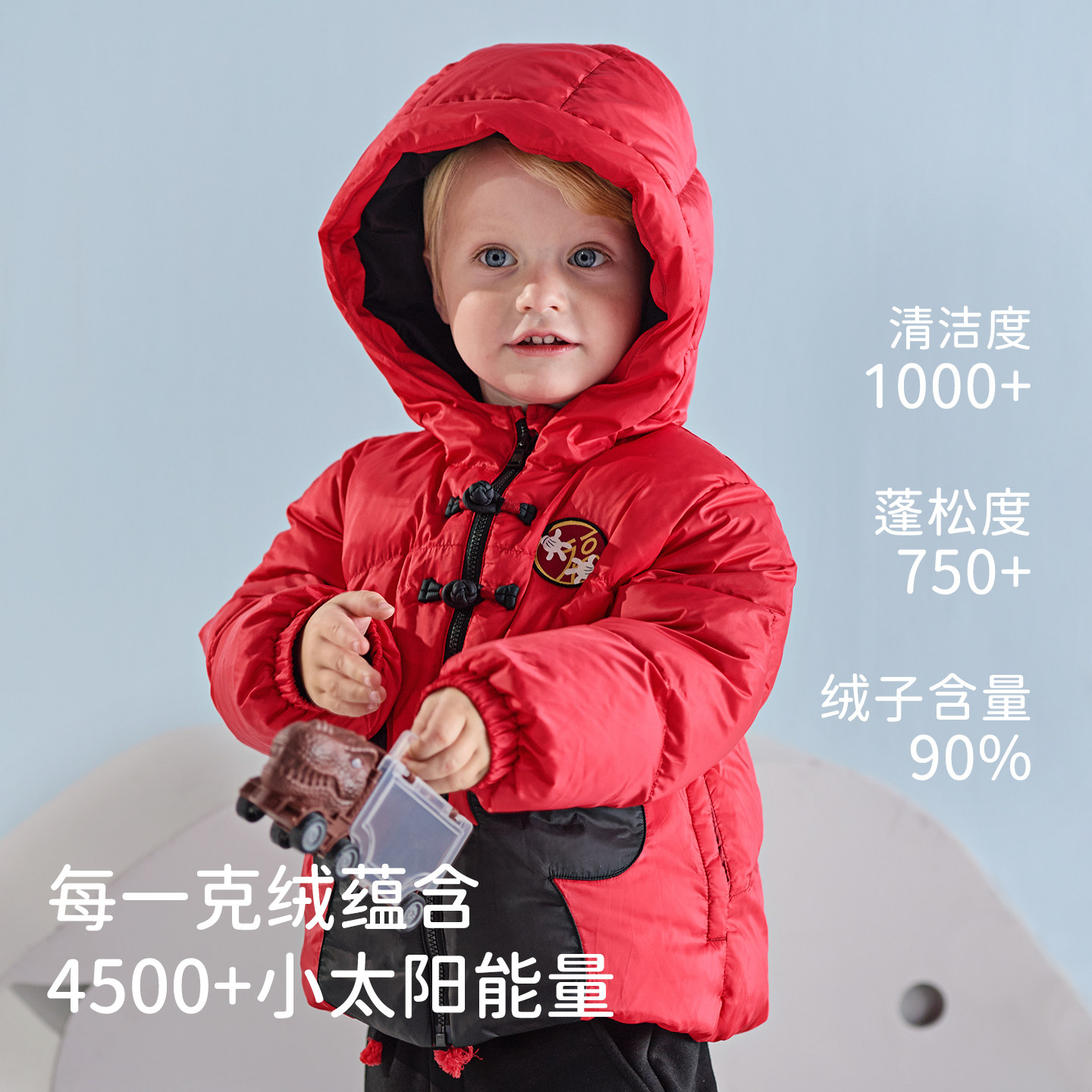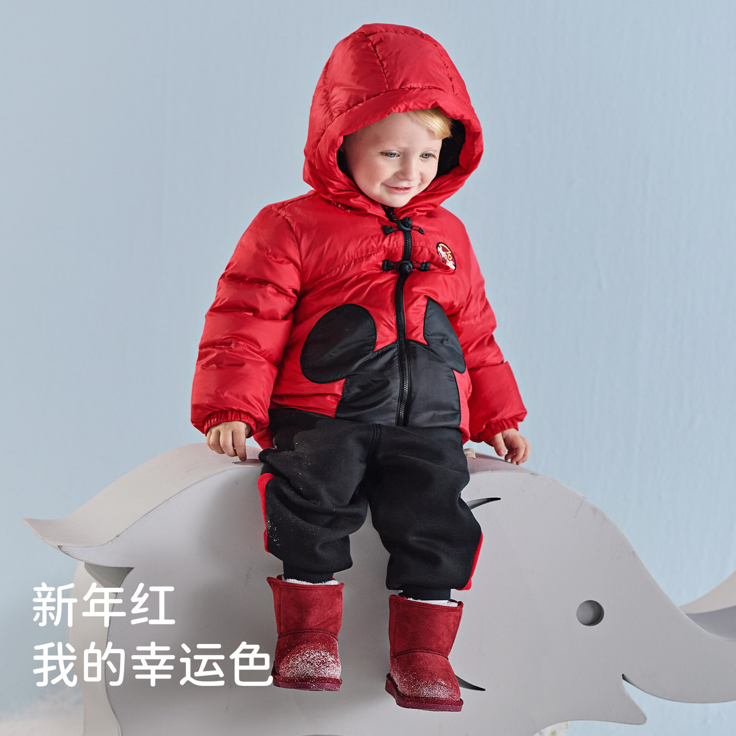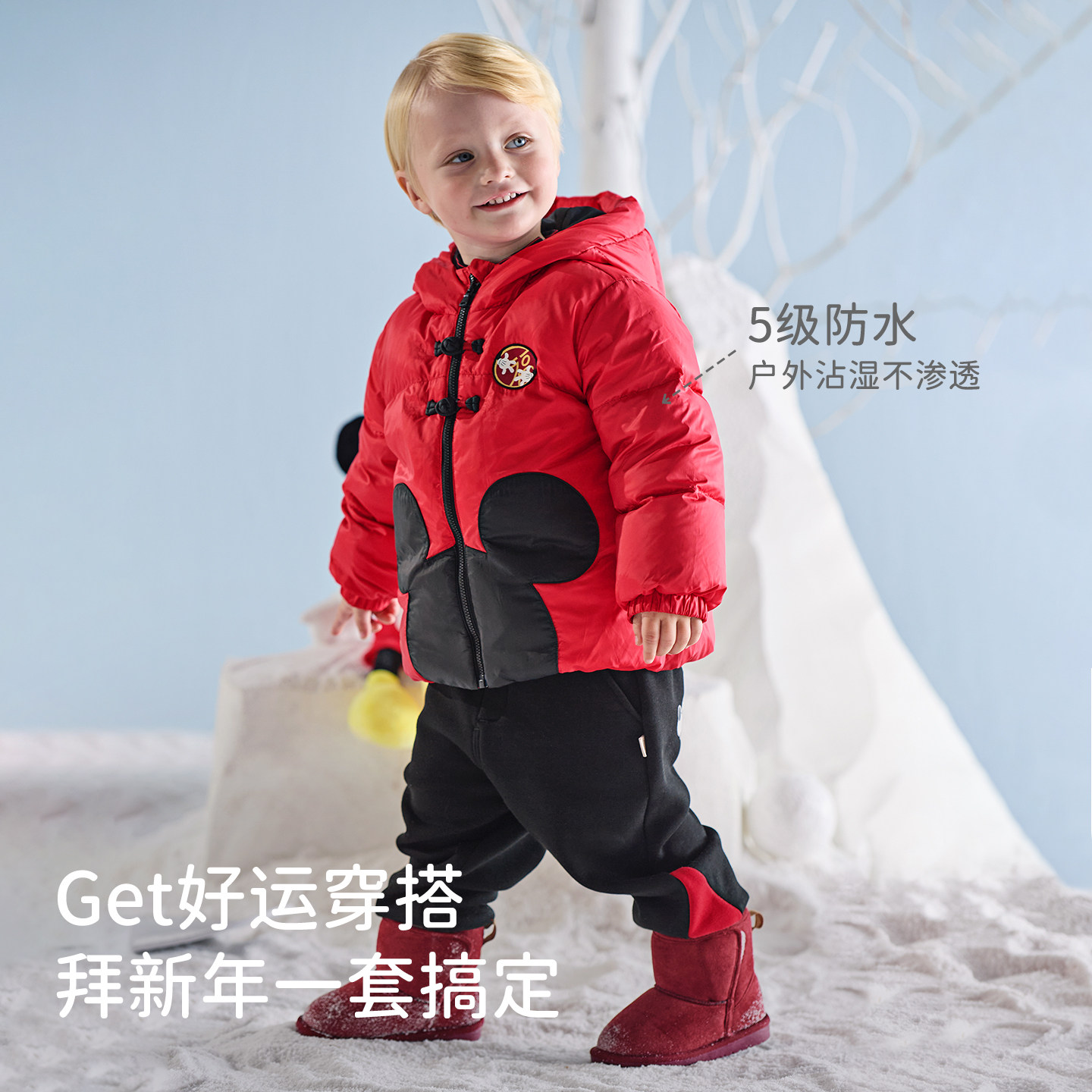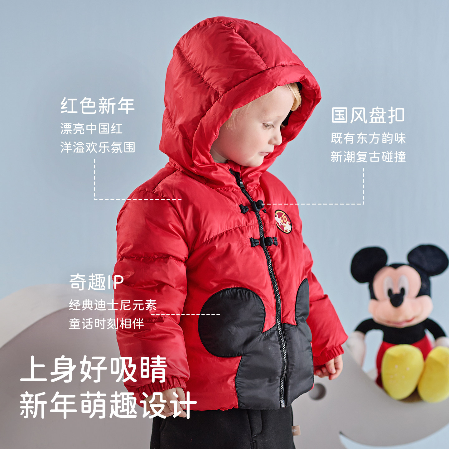 迪士尼IP戴维贝拉男童羽绒服冬季新款儿童男宝防水红色新年外套