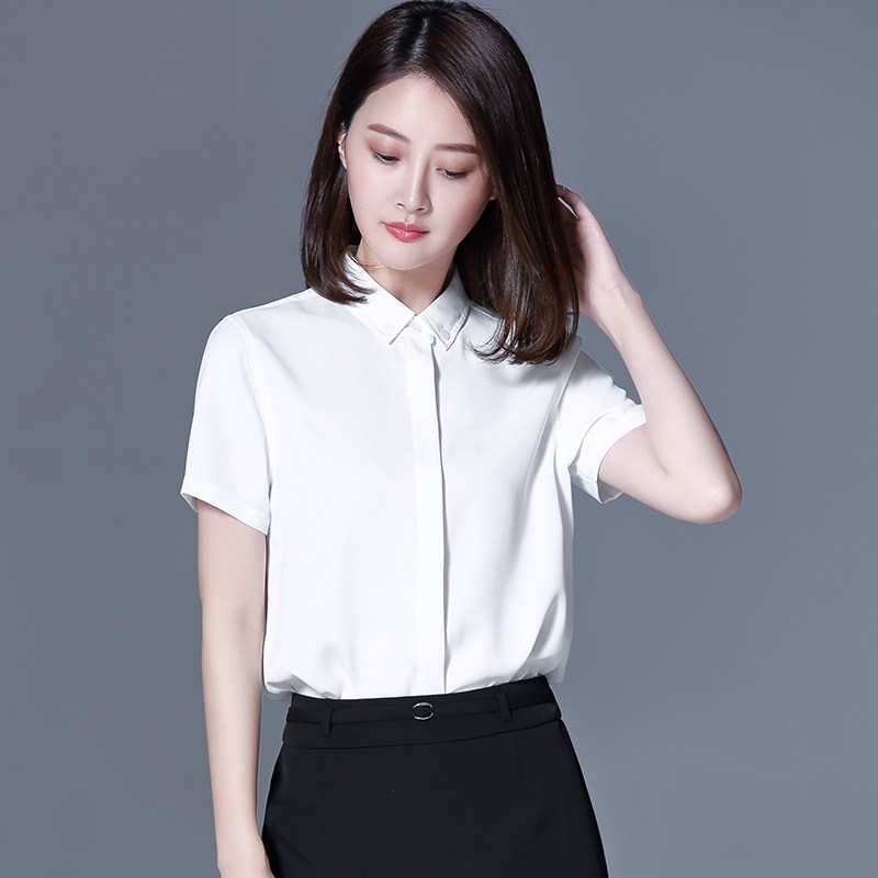 白色雪纺短袖衬衫女2026夏季新款职业装垂感时尚气质宽松女士衬衣