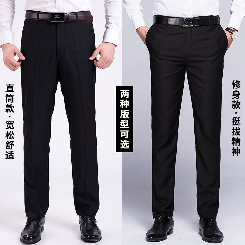 男士商务西裤宽松直筒休闲裤男薄款中青年免熨烫垂坠感修身西装裤