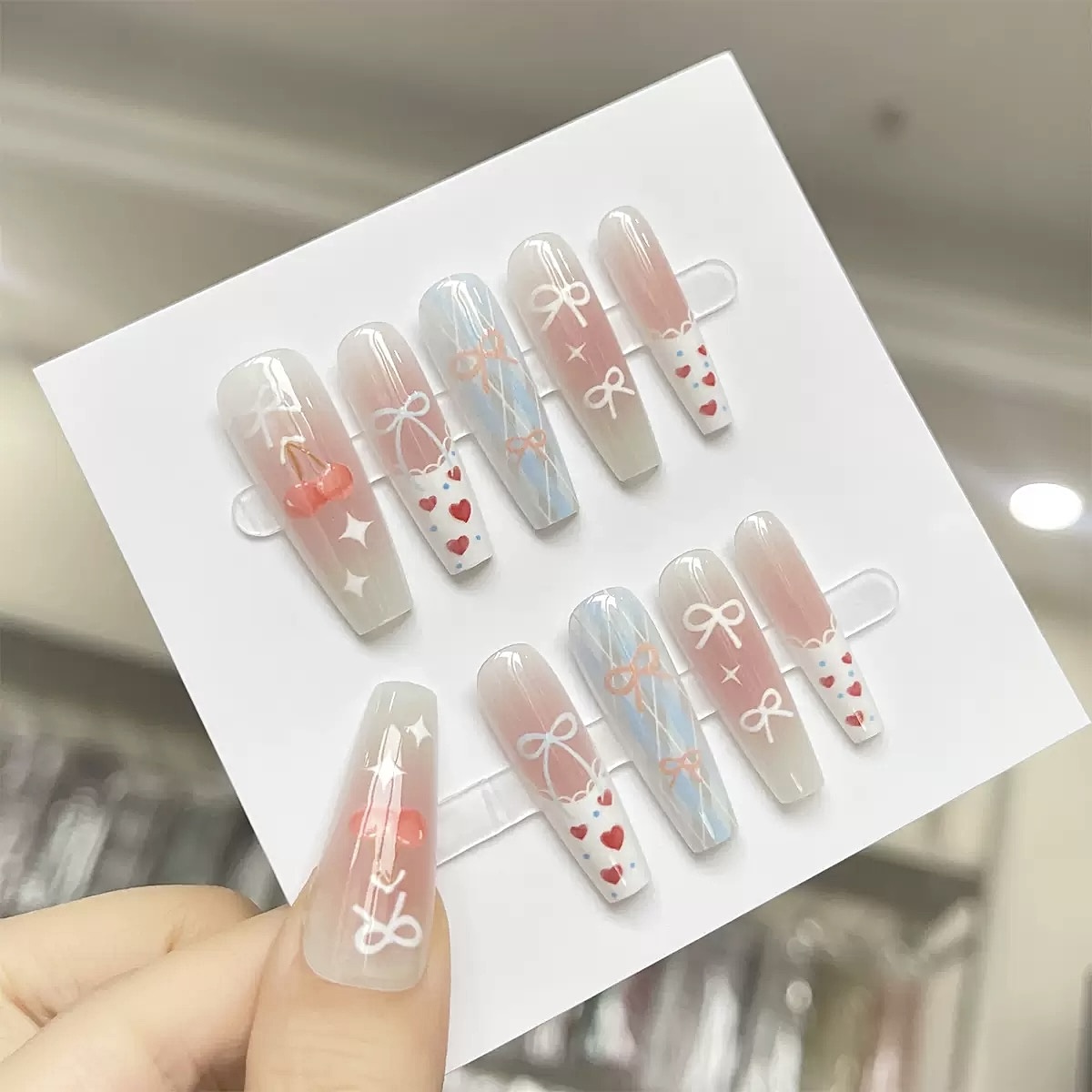 【Yuki穿戴甲】樱桃爱心蝴蝶结法式格纹春夏欧若风机器喷印甲片