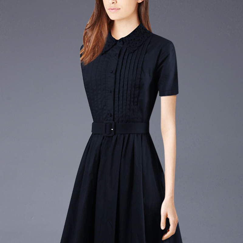 欧美时尚衬衫连衣裙夏2025新款女装大码短袖修身显瘦端庄大气裙子
