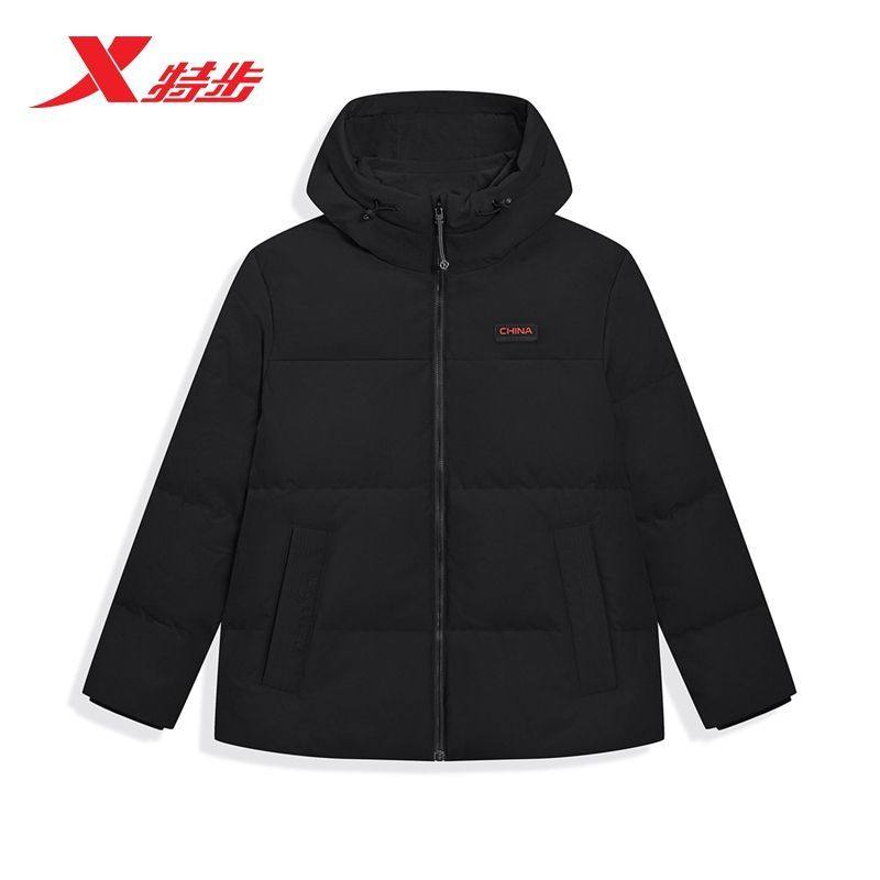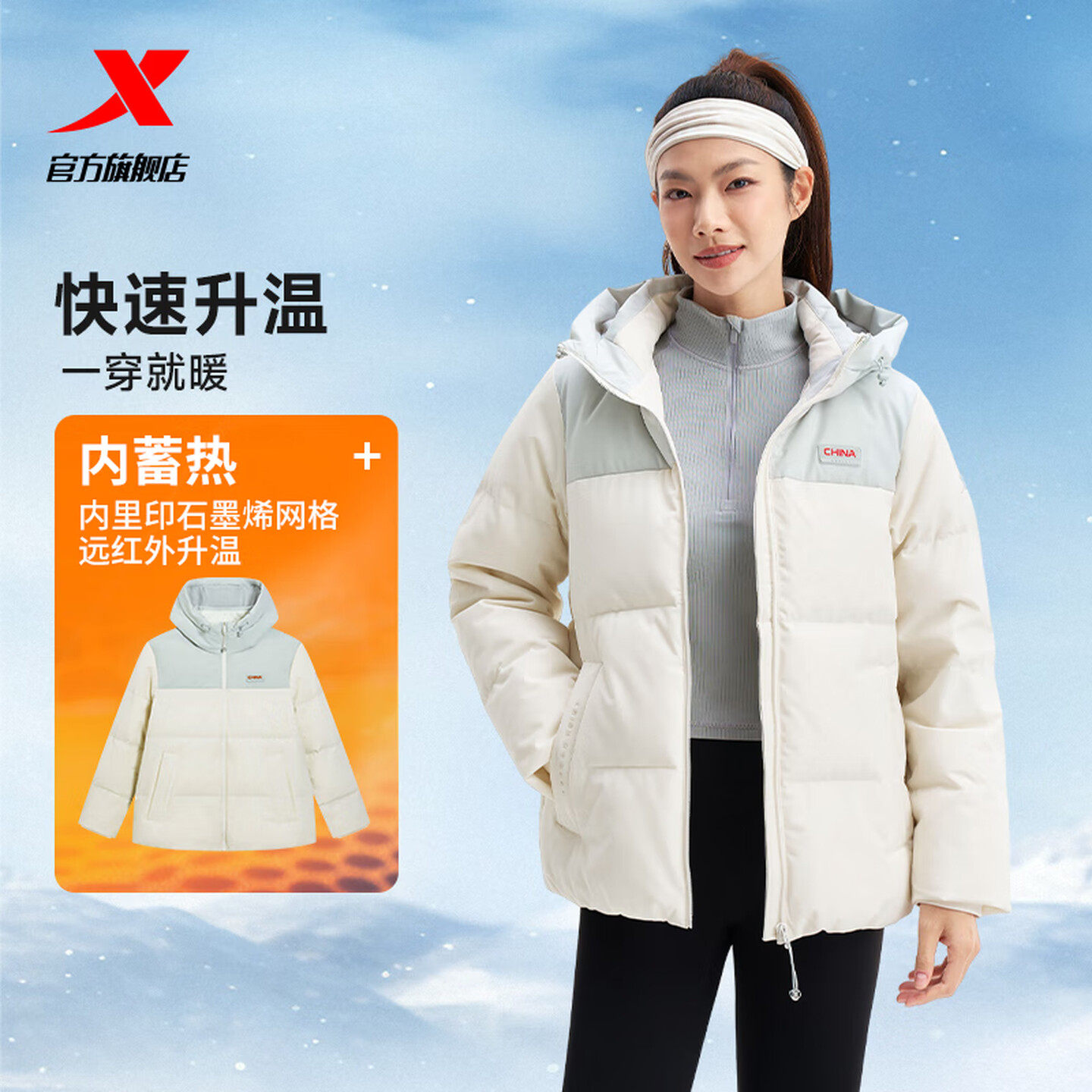 特步连帽羽绒服女款外套2025冬季新款CHINA运动加厚保暖鸭绒防风