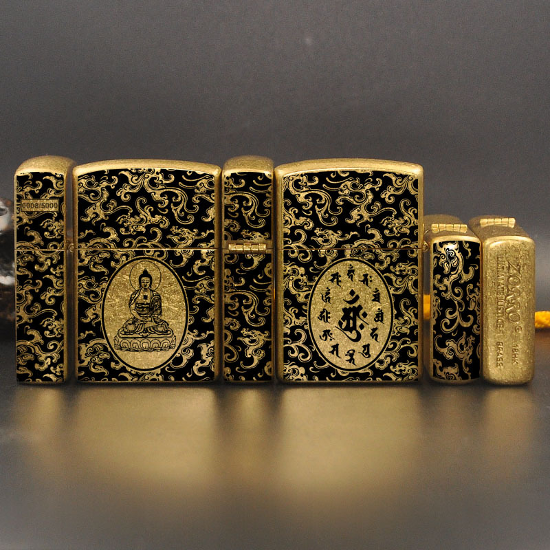 ZORRO佐罗正品纯铜砂轮防风煤油打火机复古五面雕刻佛像祥云佛主