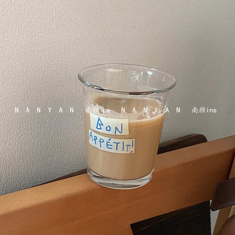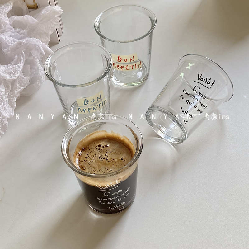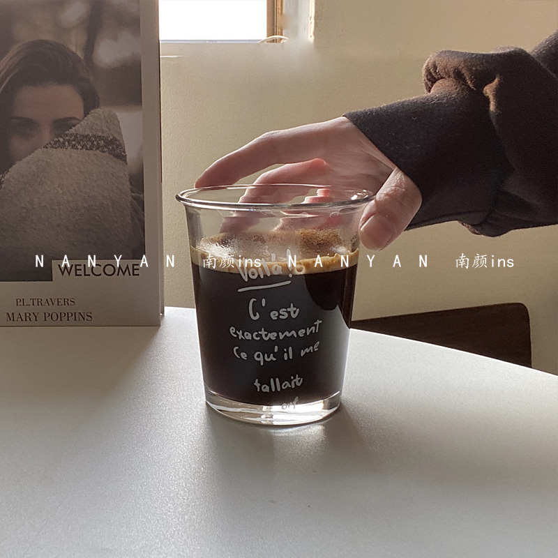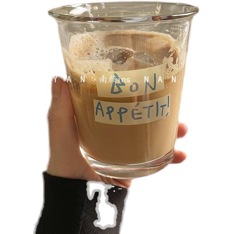 ins网红咖啡厅美式冷萃冰拿铁咖啡杯日韩法式字母印花玻璃早餐杯
