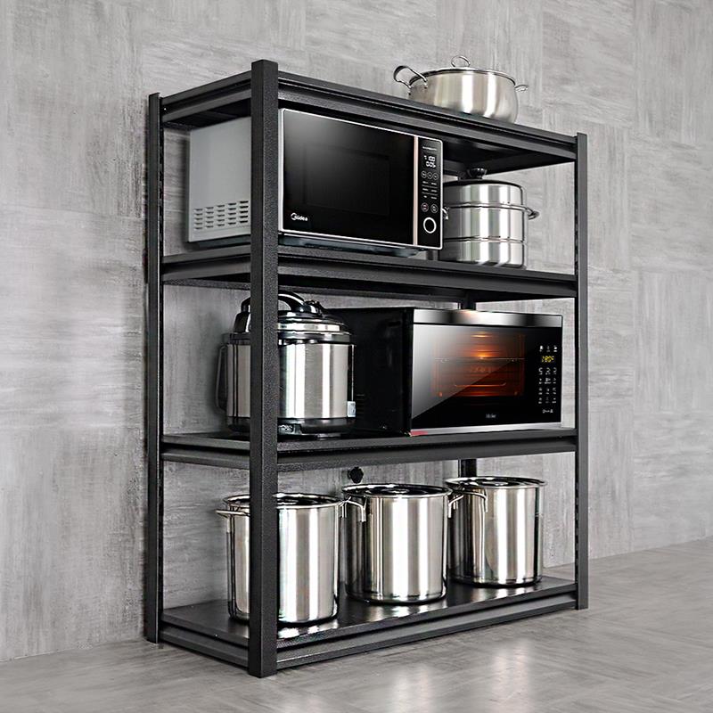 加厚厨房置物架落地式多层货架置物架2345层黑色收纳架微波炉架子