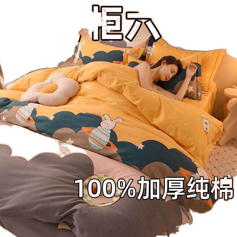 新款1O%加厚亲肤O套磨毛棉四件套全棉床单cXk8wpbp被三件纯套