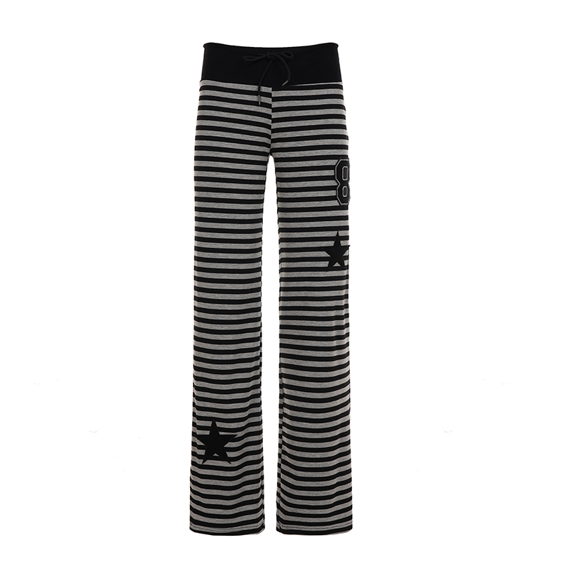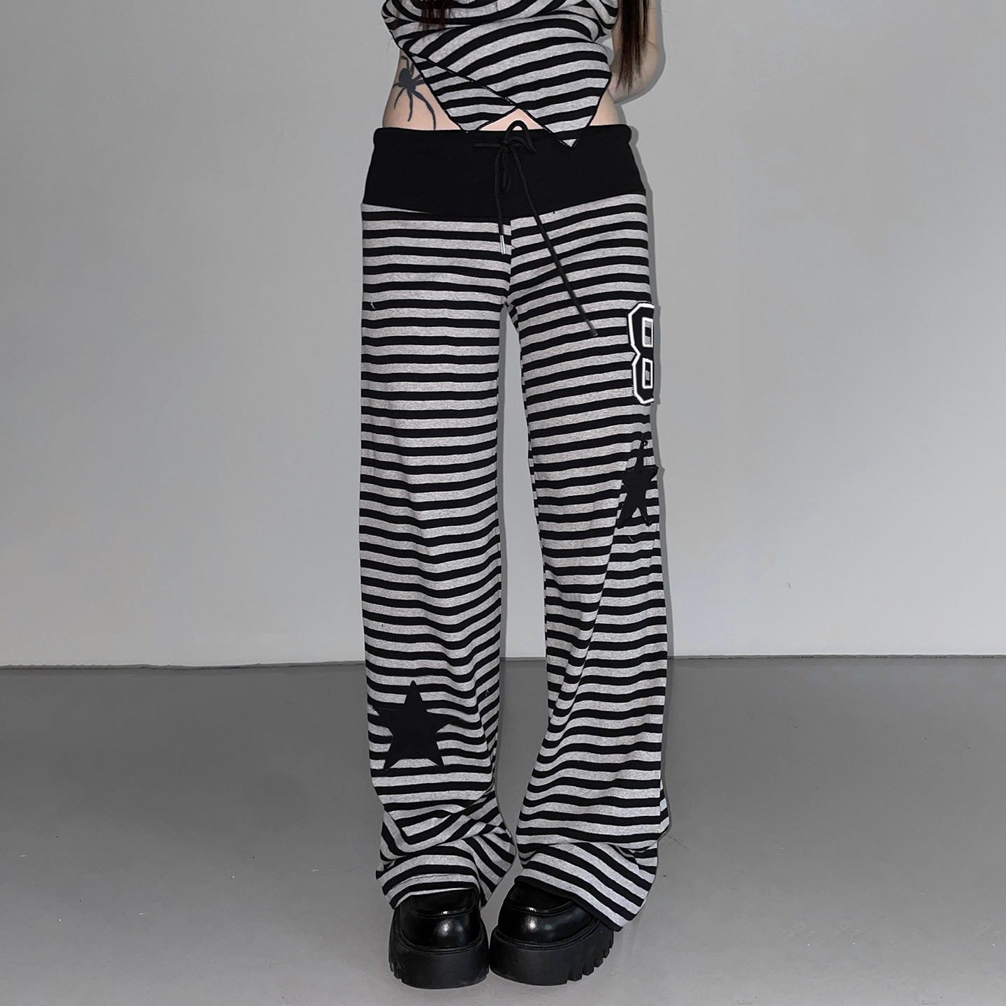 WEEKEEP 百搭休闲撞色条纹数字星星贴布休闲裤女低腰直筒宽松长裤