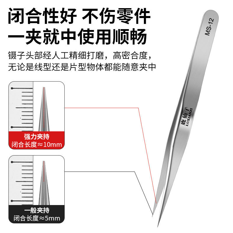 鹿仙子高精密镊子不锈钢加厚特硬尖头弯头夹子电子维修专用工具