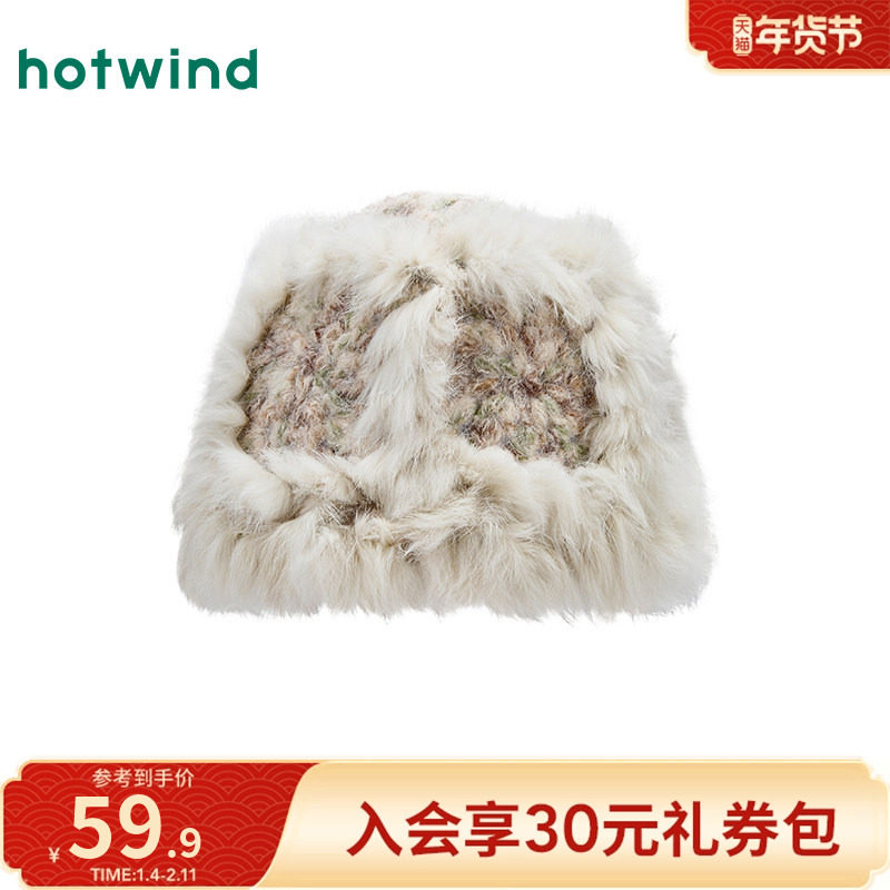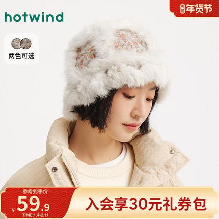 热风女士毛绒帽子2025年冬季新款彩色拼接盆帽保暖御寒显脸小帽子