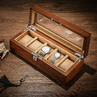 夭桃(饰品)榆木纯实木天窗手表盒五位机械表展示收藏收纳盒带锁
