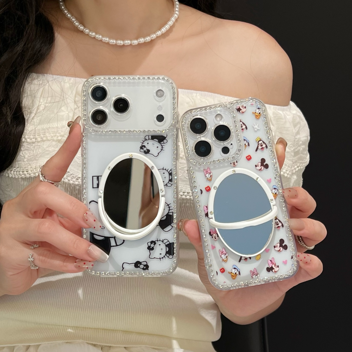 镶钻边框kt猫iphone17/16promax镜子手机壳透明15pro苹果13/14全包保护壳水钻卡通米奇适用12新款凯蒂猫软壳