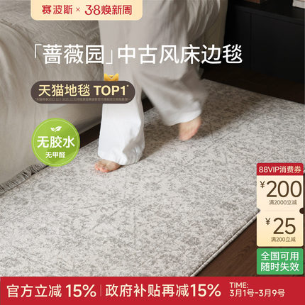 赛波斯蔷薇园无胶床边毯卧室中古风轻奢高级法式床尾毯地毯衣帽间